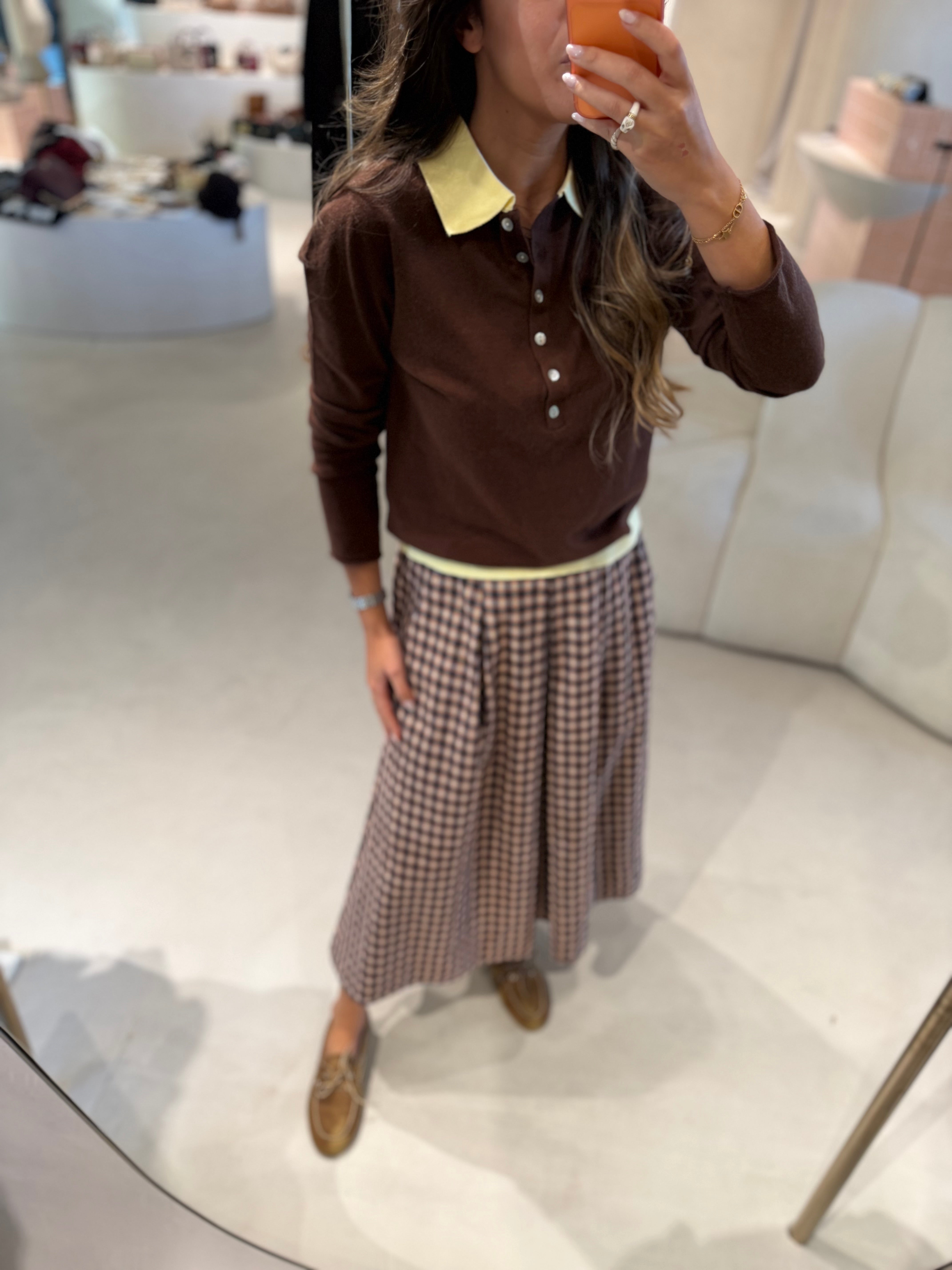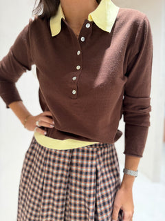 Polo em Malha Castanha com Gola Amarela | VIOLETA