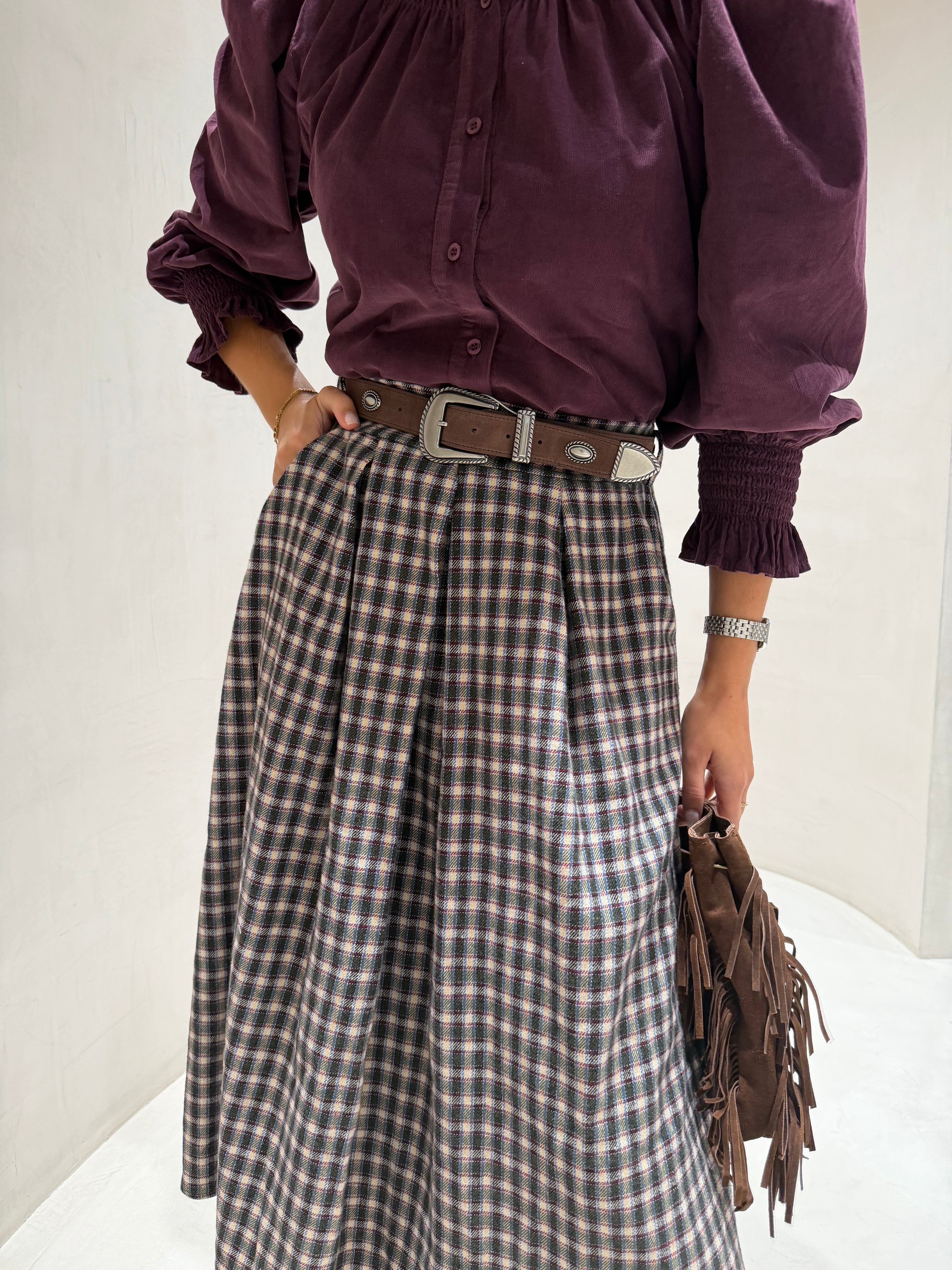 Saia de Lã Estampa Xadrez em Verde | VIOLETA