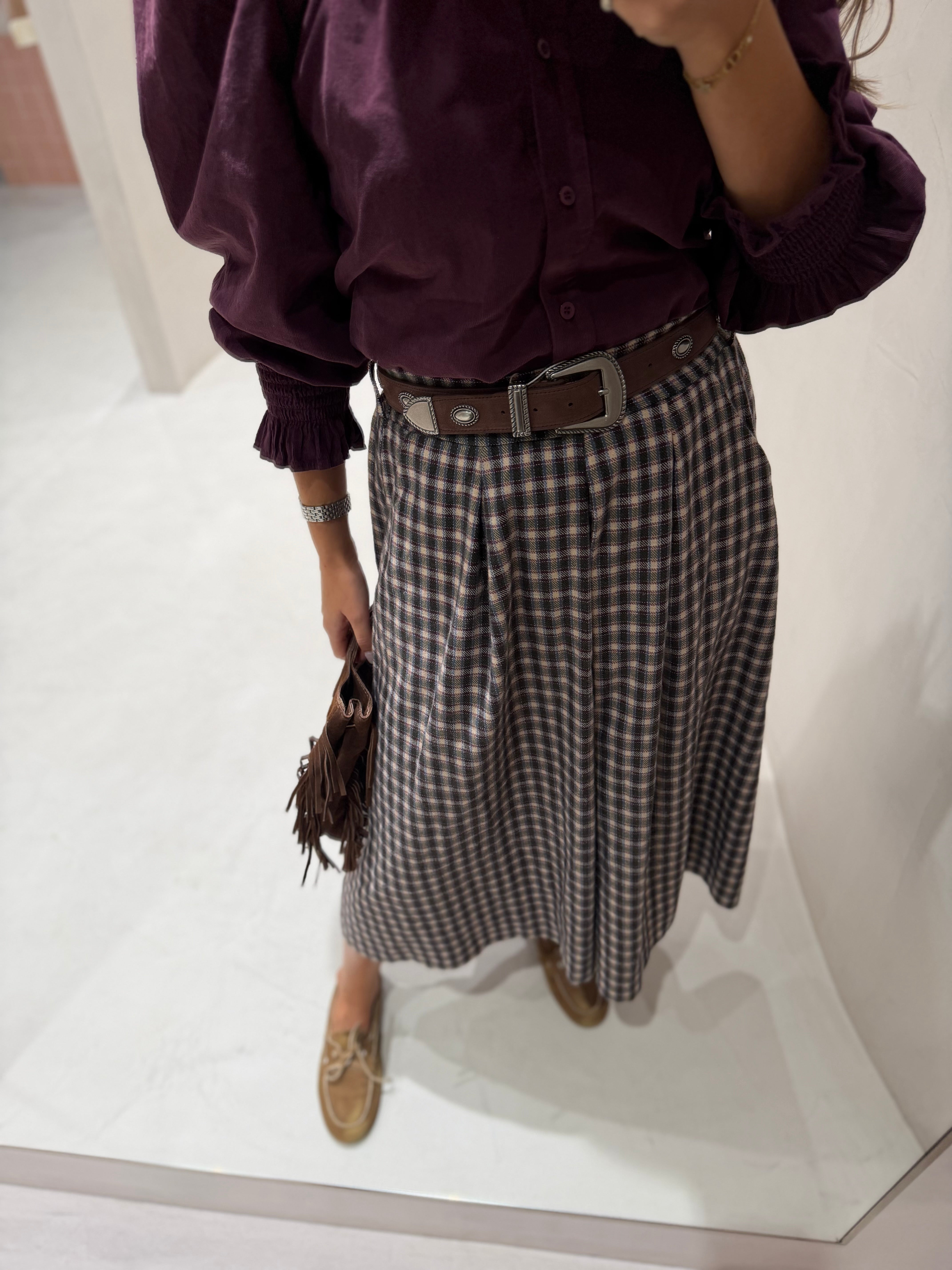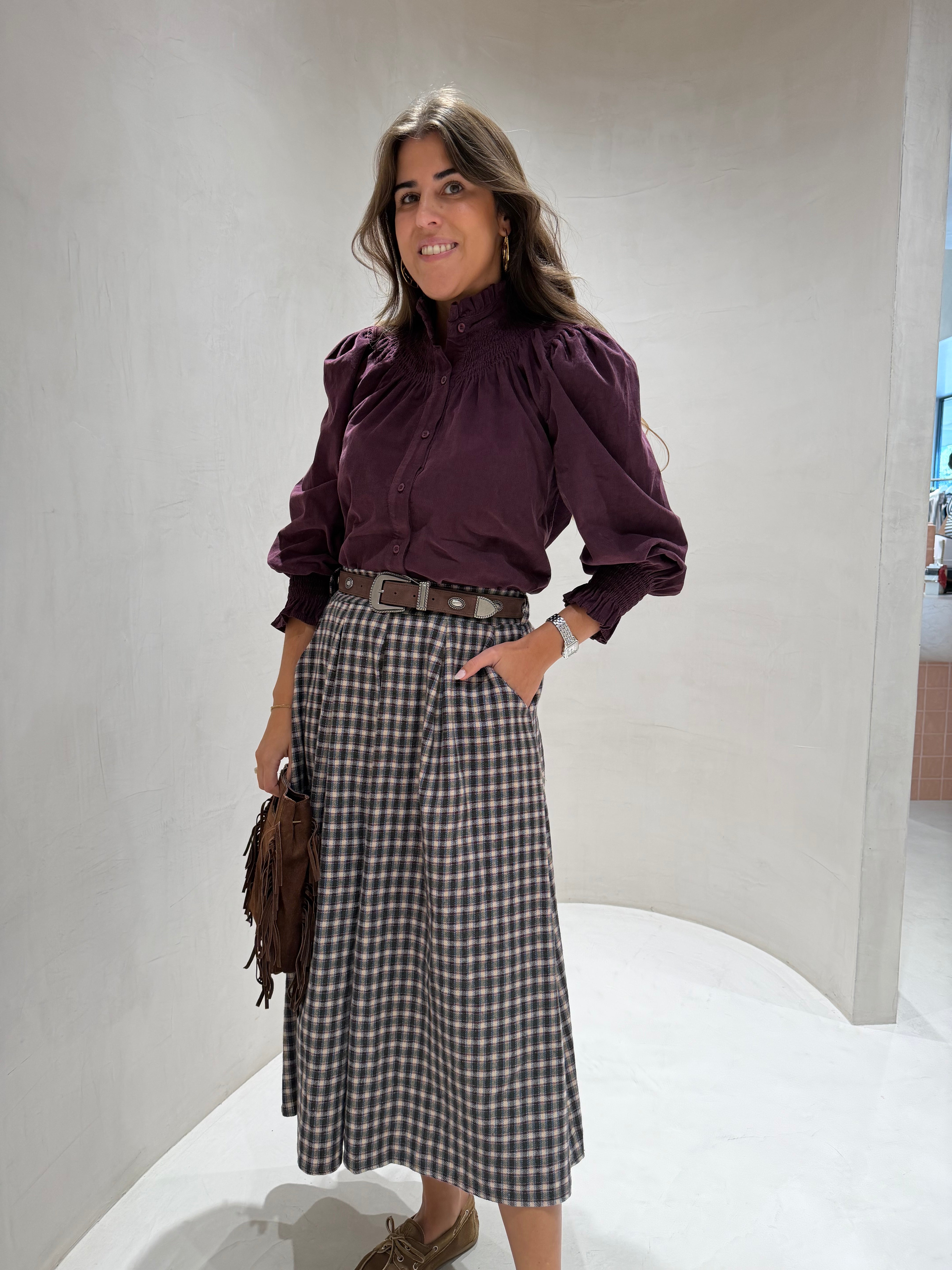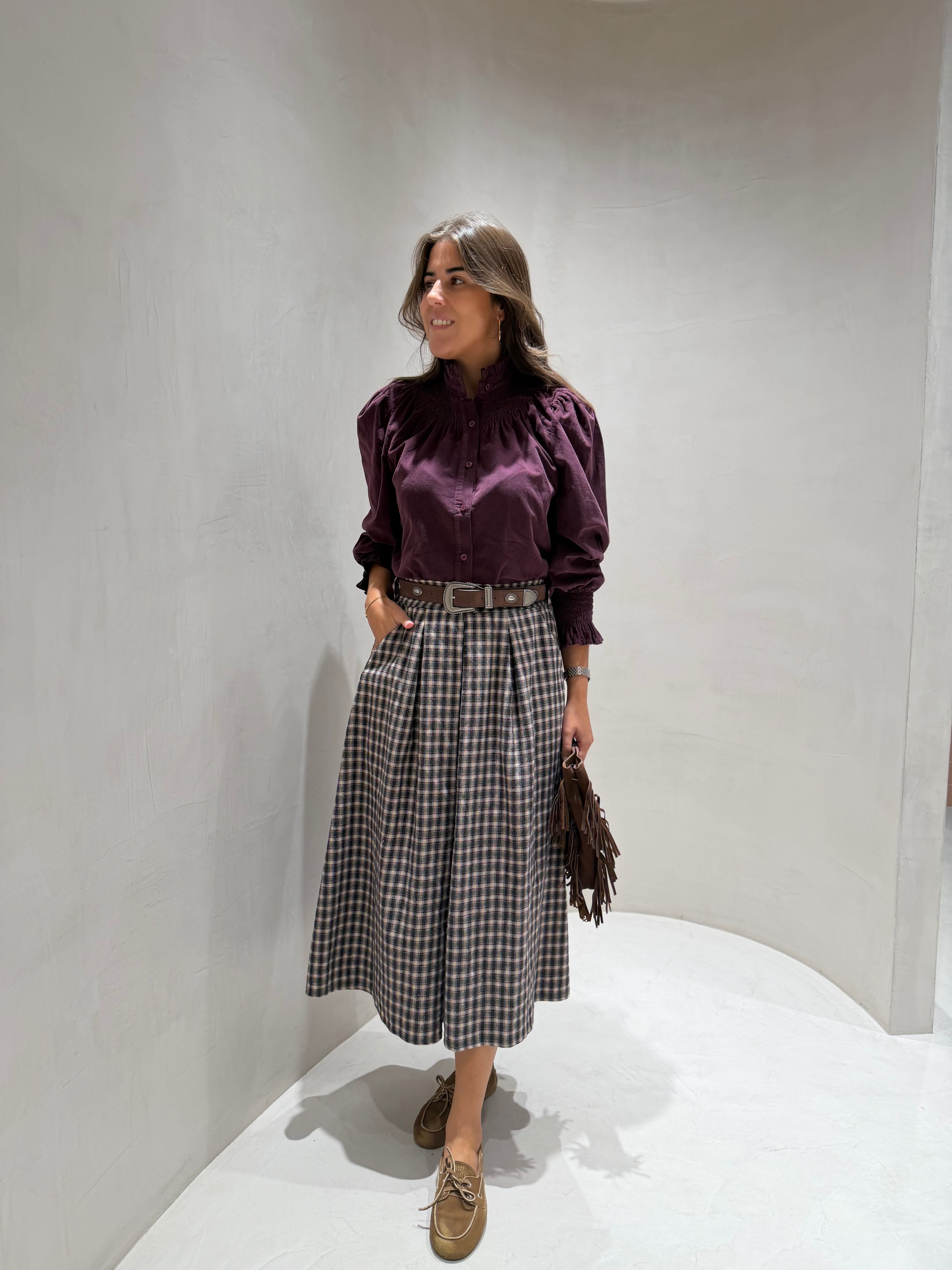 Saia de lã com estampa xadrez e elástico na cintura para maior conforto e ajuste perfeito. Confeccionada em tecido leve e macio, combinam estilo clássico com praticidade, ideal para compor looks modernos e descontraídos.