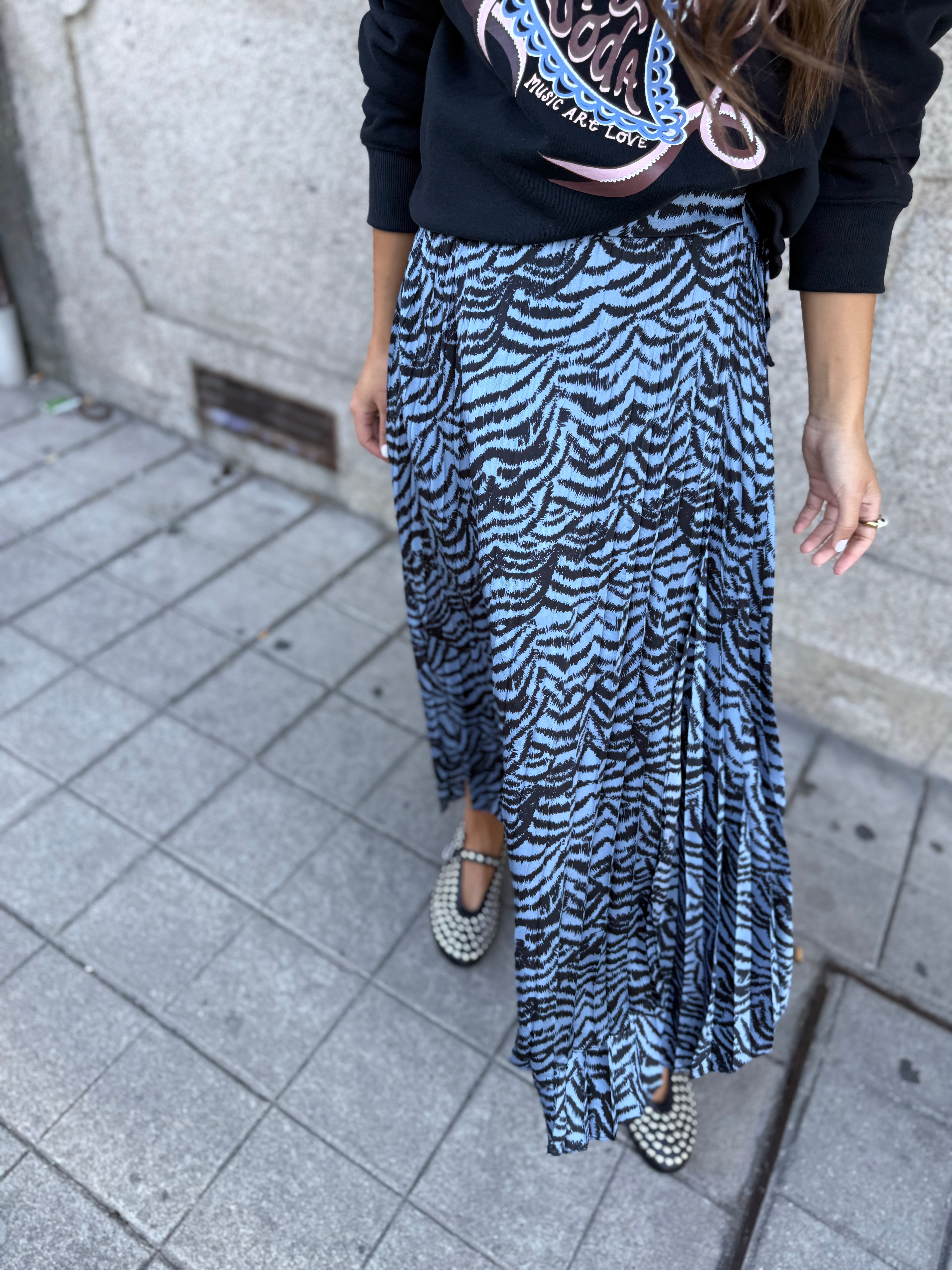 Saia Midi Assimétrica Plissada em Animal Print Azul | Scotch & Soda