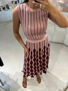 Saia Midi em Tricot Bordeaux e Rosa Francis | CECILIA PRADO
