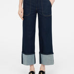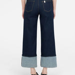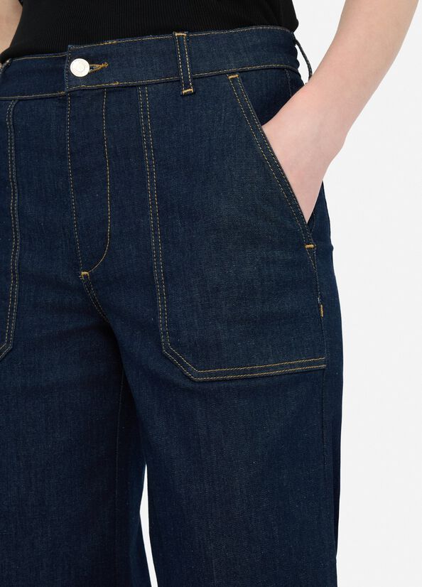 O Straight Cropped Jeans da Liu Jo é confeccionado em denim com algodão, poliéster e elastano. Tem caimento reto, cintura alta e barra dobrada (turn‑up), com vinco passado para um toque sofisticado. Possui modelo de cinco bolsos e fechamento por zíper escondido e botão. O comprimento da perna é de 69 cm, com largura na parte inferior de 26 cm