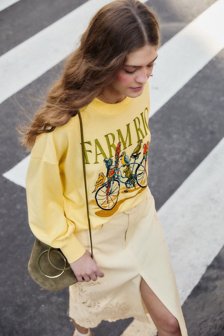 Camisola Amarela "Birds Bicycle" Bordada | FARM RIO