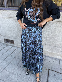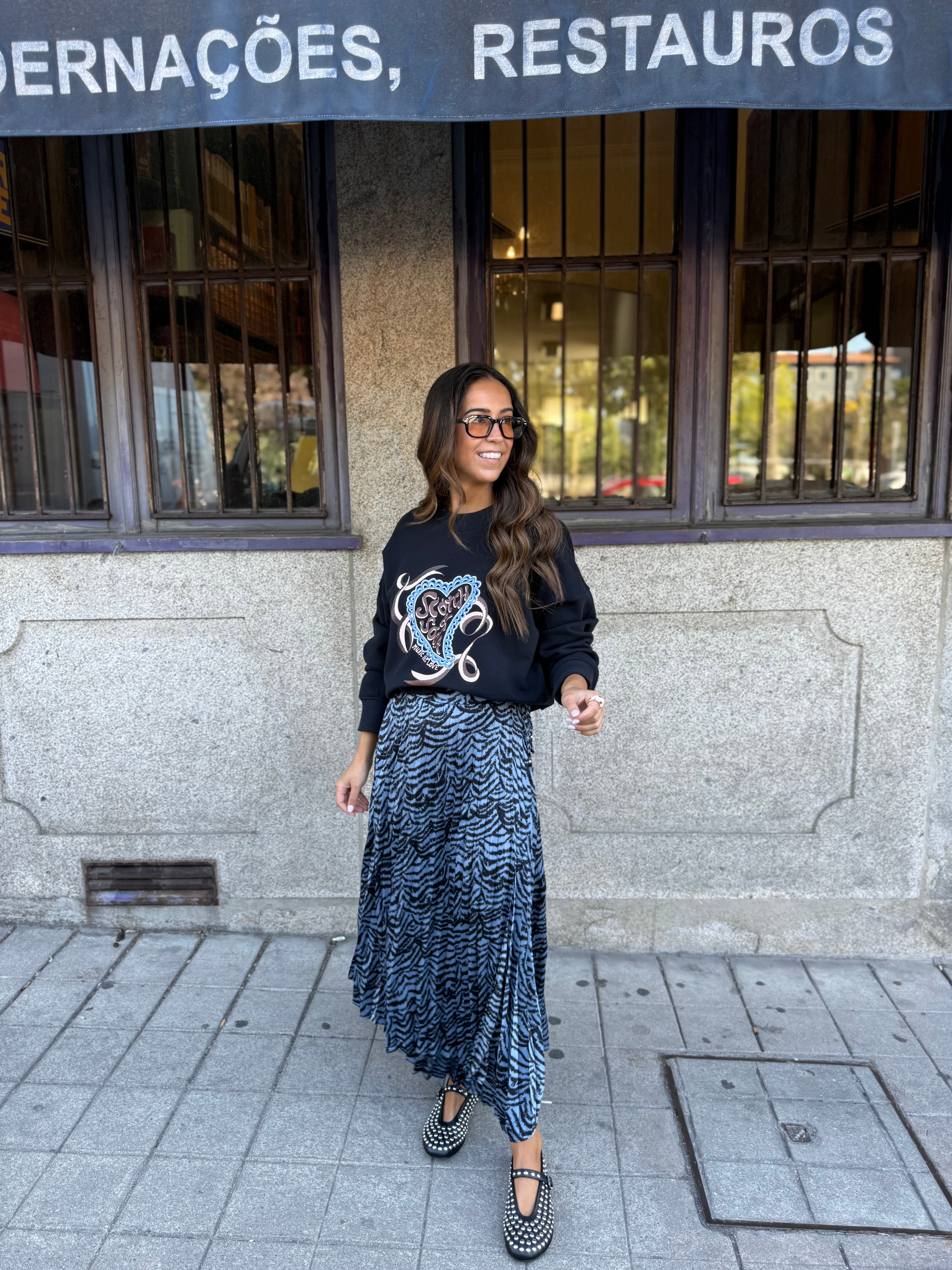 Destaque para o artwork frontal que lhe dá personalidade — um detalhe expressivo mas que se integra bem em looks casuais. A gola redonda, os punhos e o cós canelados ajudam a manter o conforto e o ajuste, impedindo que a peça fique demasiado larga ou perca a forma.