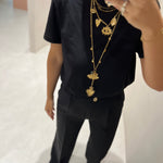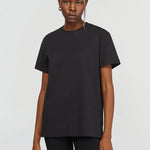 Camisola de manga curta Semicouture em preto de corte largo com gola redonda e logo bordado nas costas.