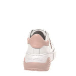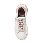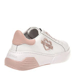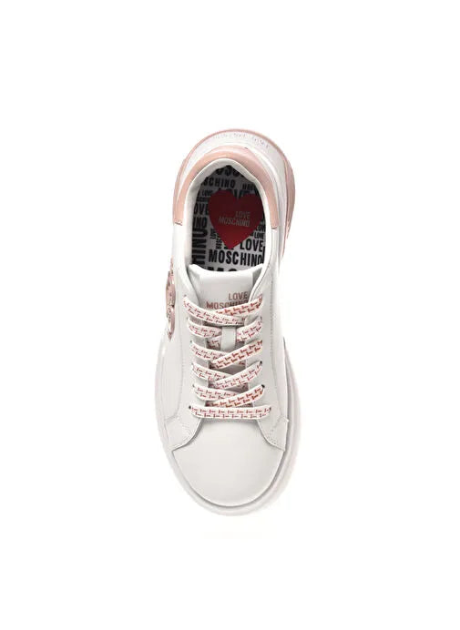 Ténis Love Moschino de plataforma em pele, branco e com detalhes rosa.