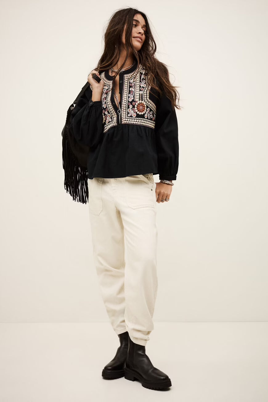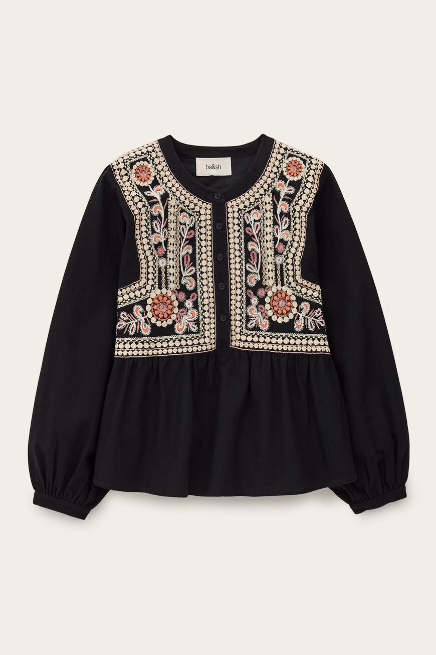 O top ALEC da ba&sh traz elegância minimalista com corte estruturado em 100% algodão. Versátil e moderno, combina com calças de cintura alta, jeans ou saias para um look chic e descontraído.