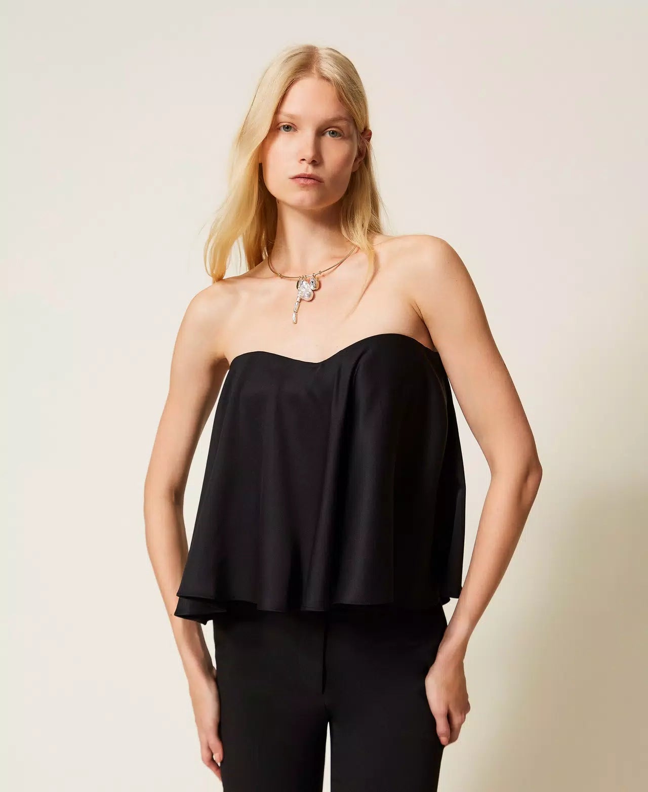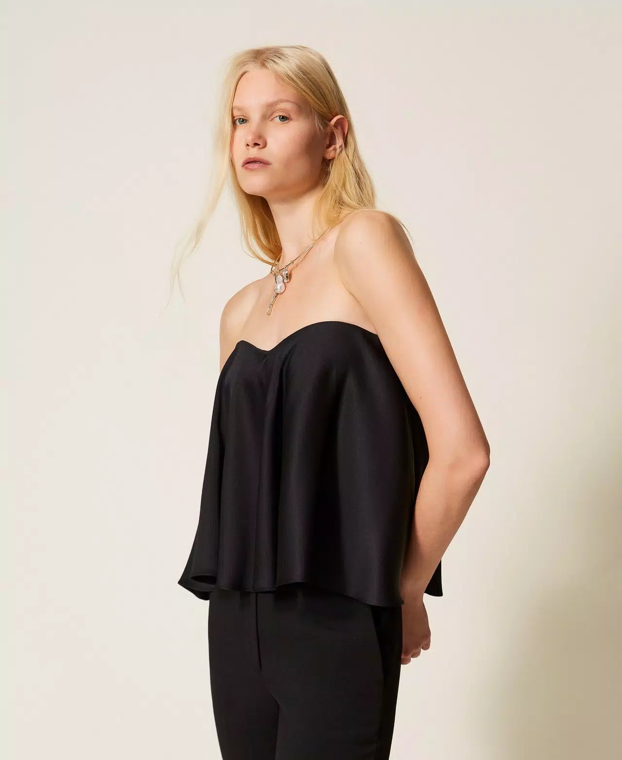Top Bustier em Cetim Preto | TWINSET