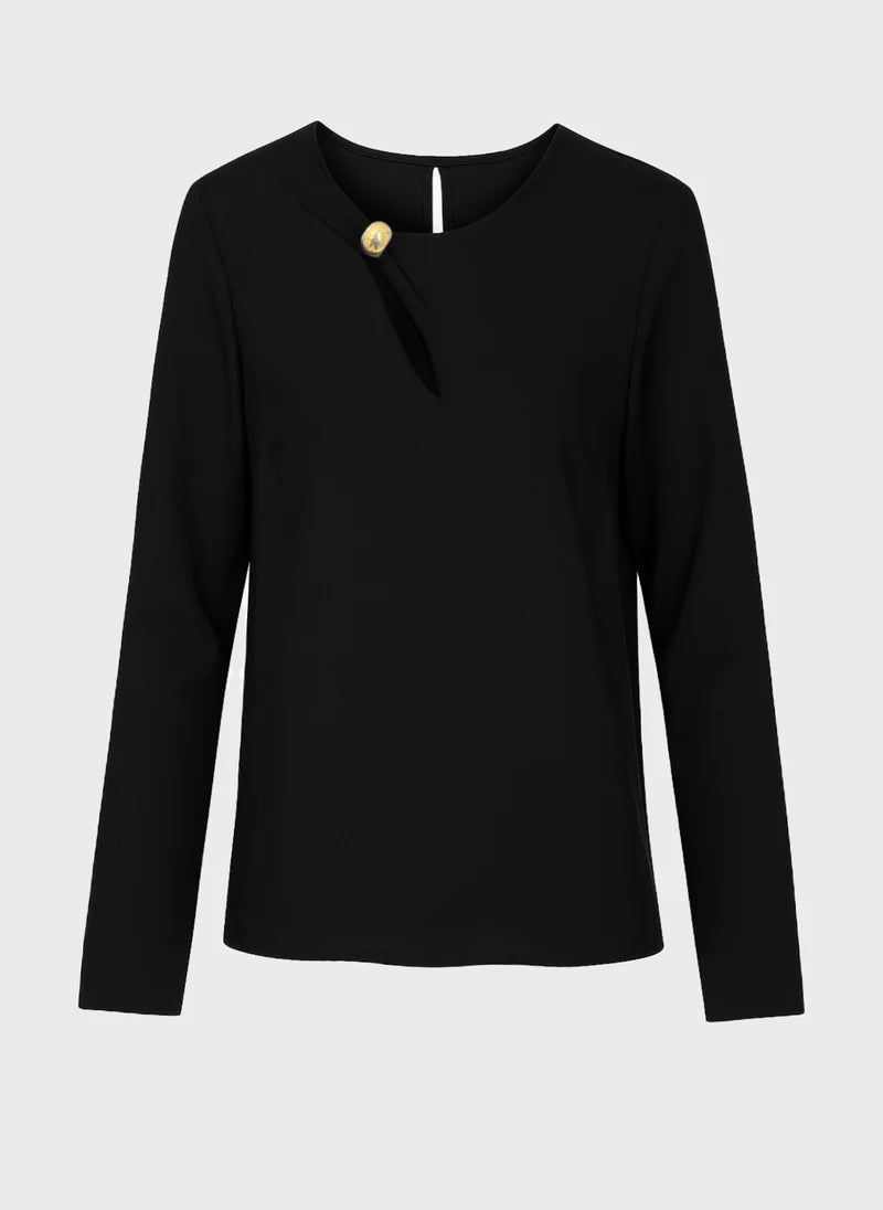 Eleve o seu visual com o Top Keza Noir uma peça que combina design contemporâneo e sofisticação sutil. Com gola assimétrica, mangas longas e acabamento em tecido premium, este top de corte recto revela uma silhueta elegante e fluida perfeito para composições do dia à noite.