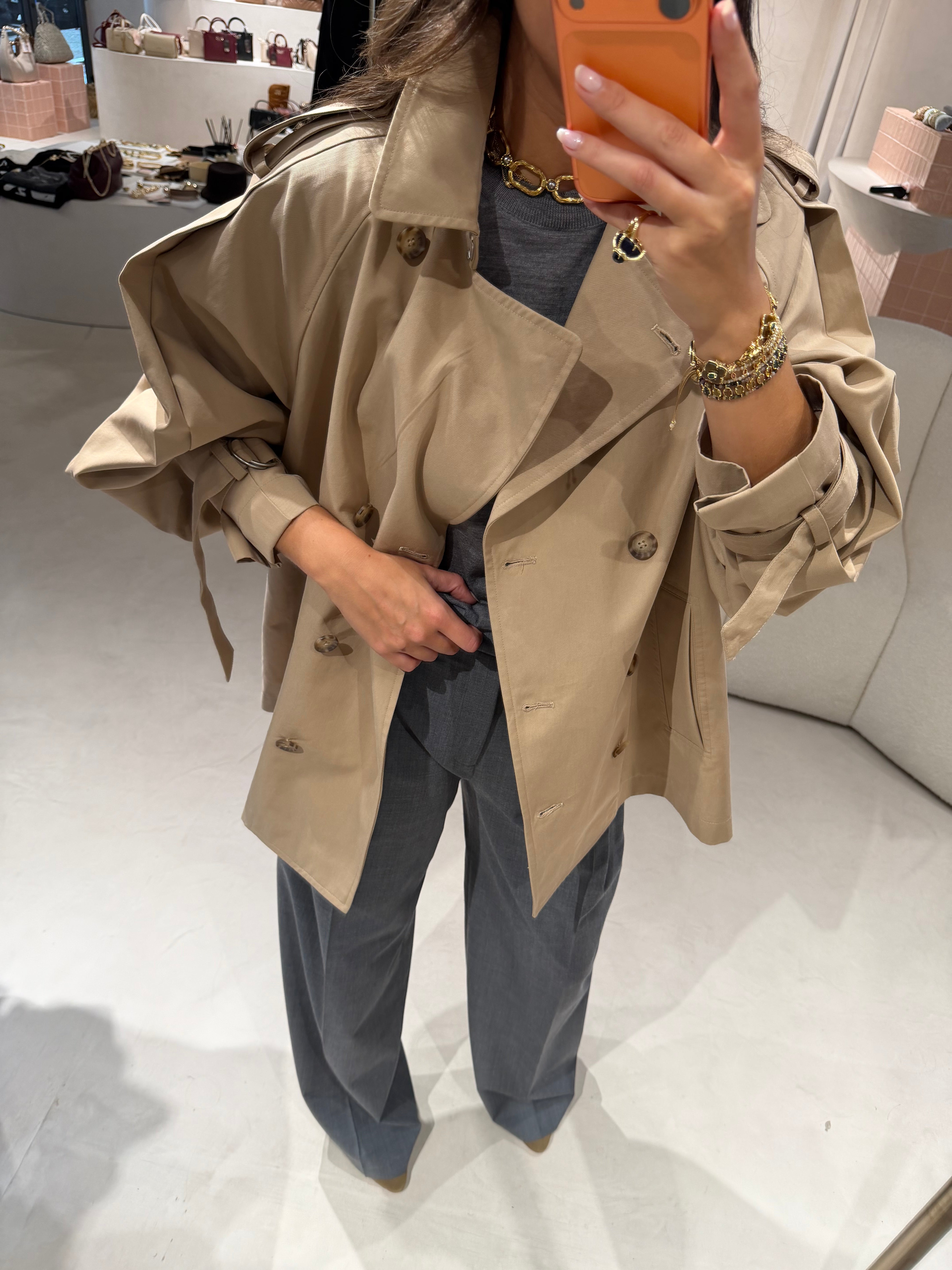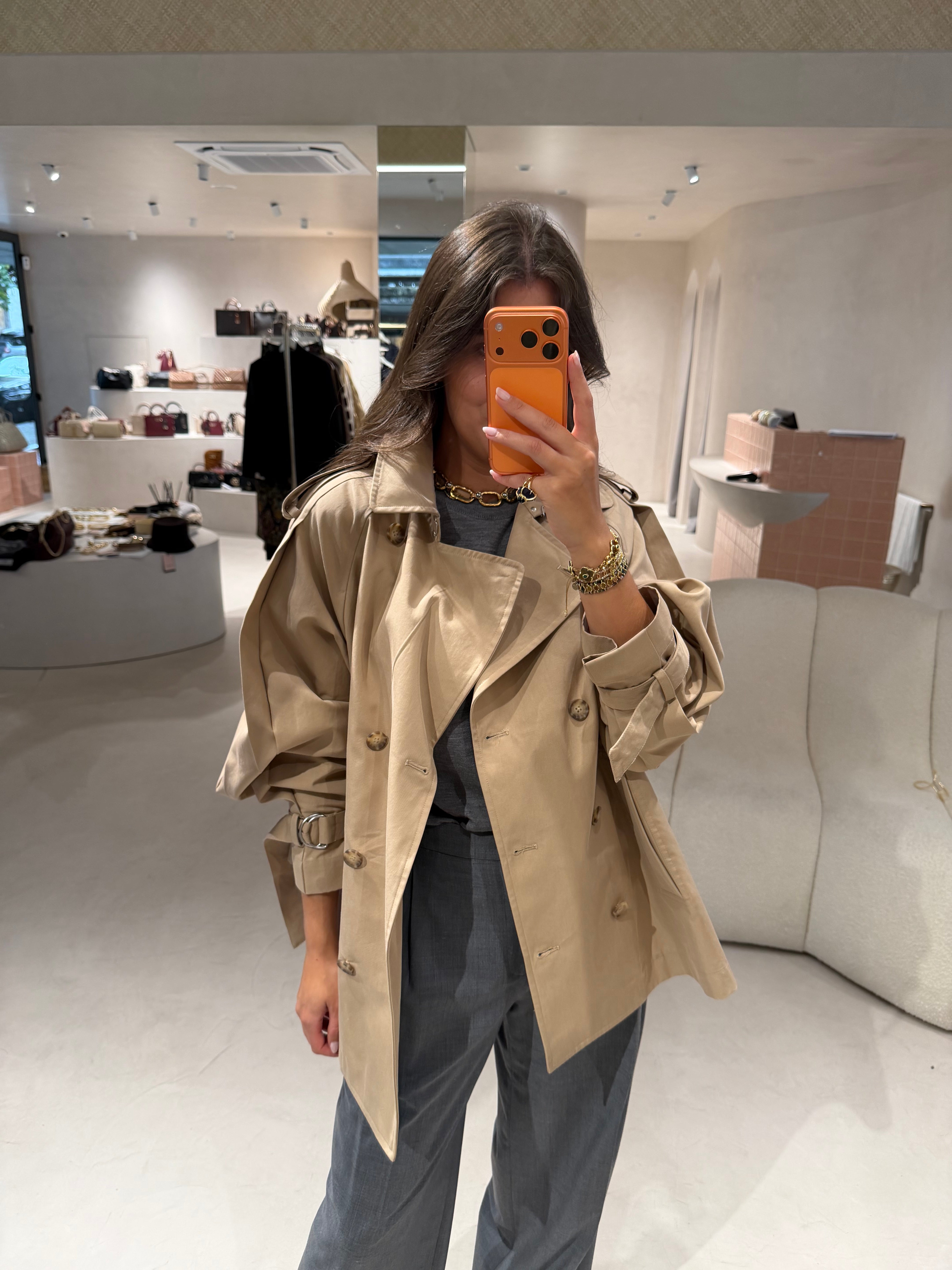 Trench Coat Curto Bege com Colete | Ottod'ame