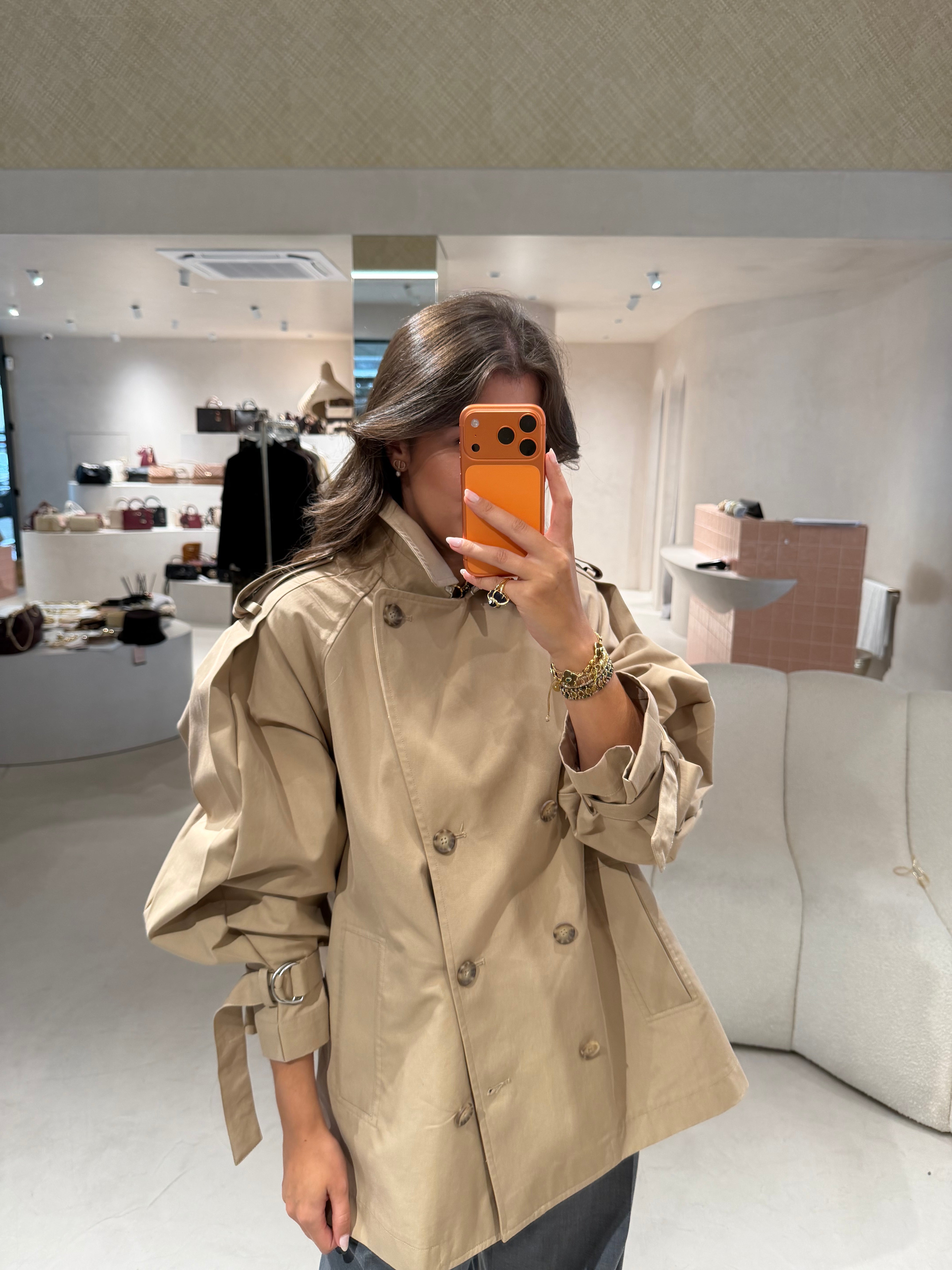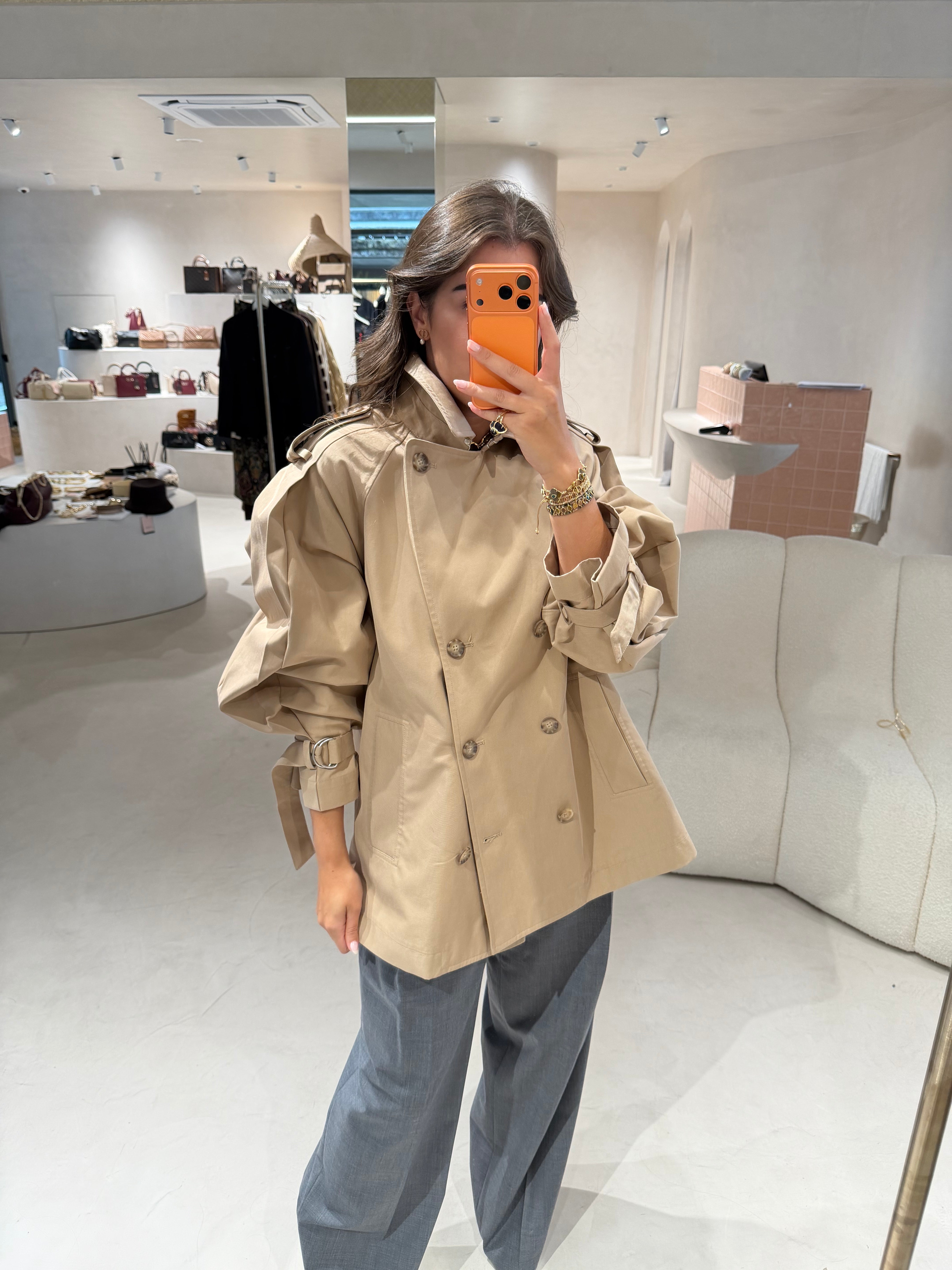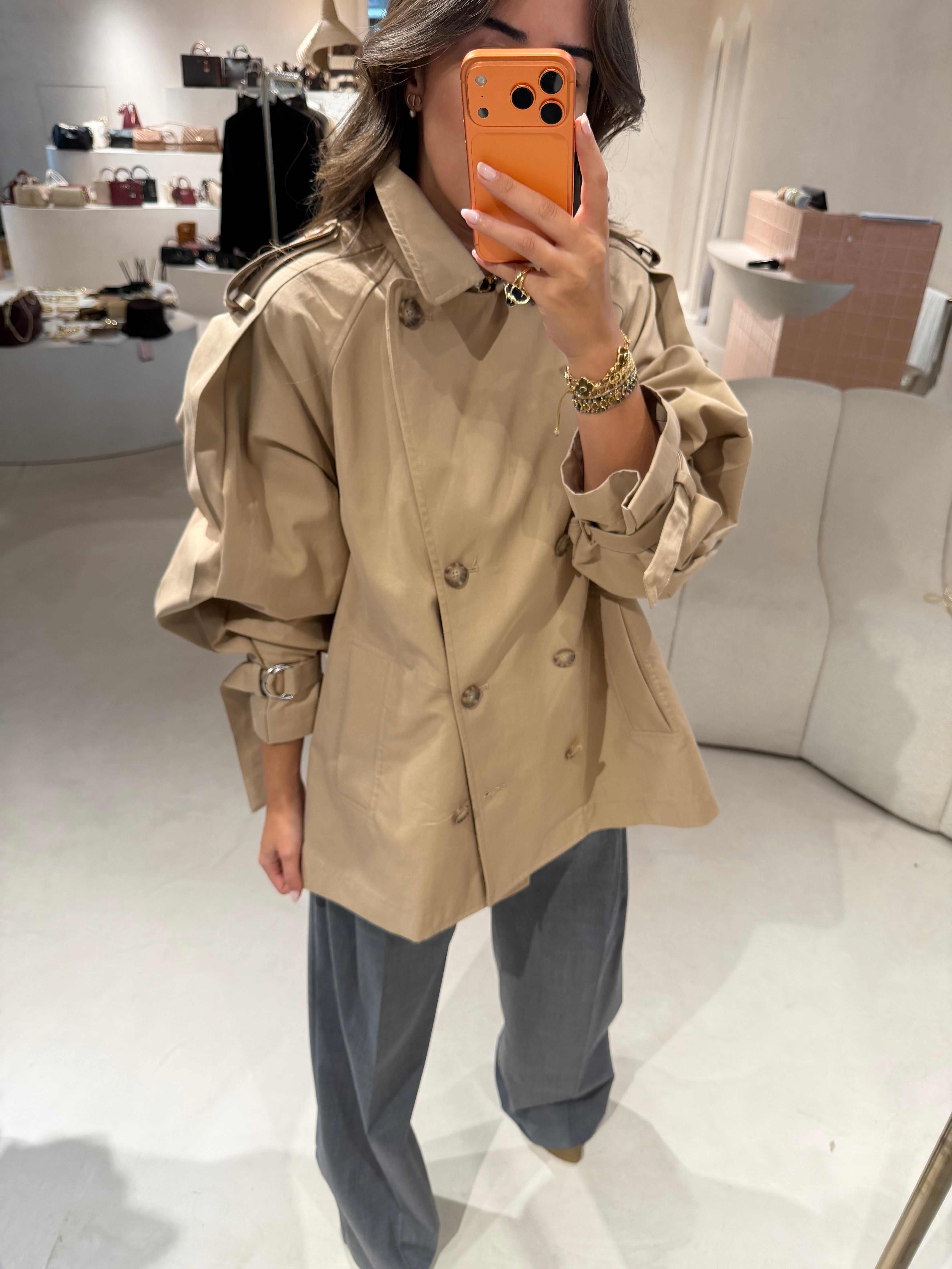Este trench coat curto da Ottod’Ame combina o clássico design de abotoamento duplo com detalhes modernos, como mangas bufantes e um colete removível. Confeccionado em tecidos técnicos de alta qualidade, oferece versatilidade para diferentes estilos e ocasiões. Ideal para looks sofisticados e contemporâneos, é uma peça essencial para a tua coleção de outono/inverno.