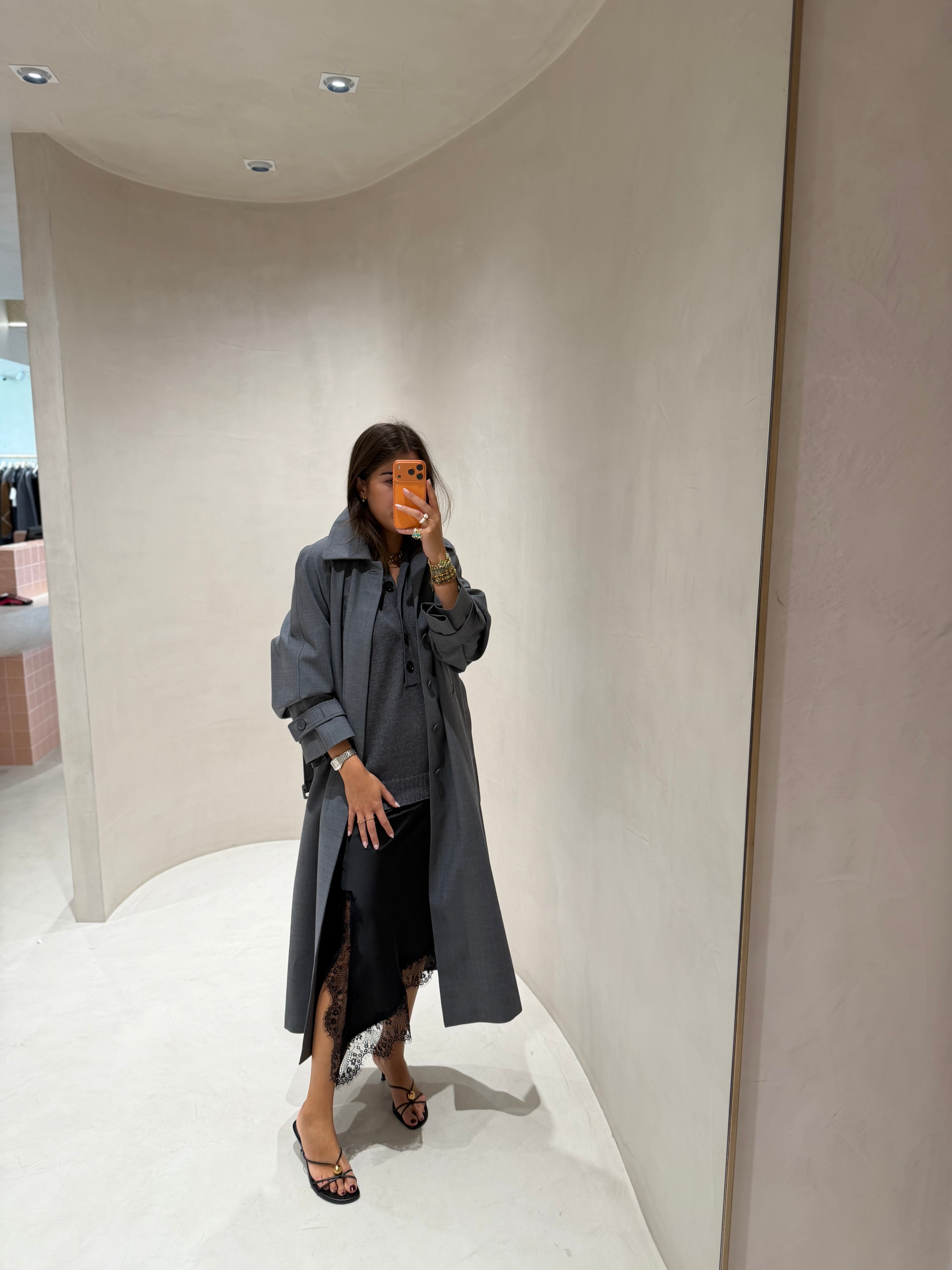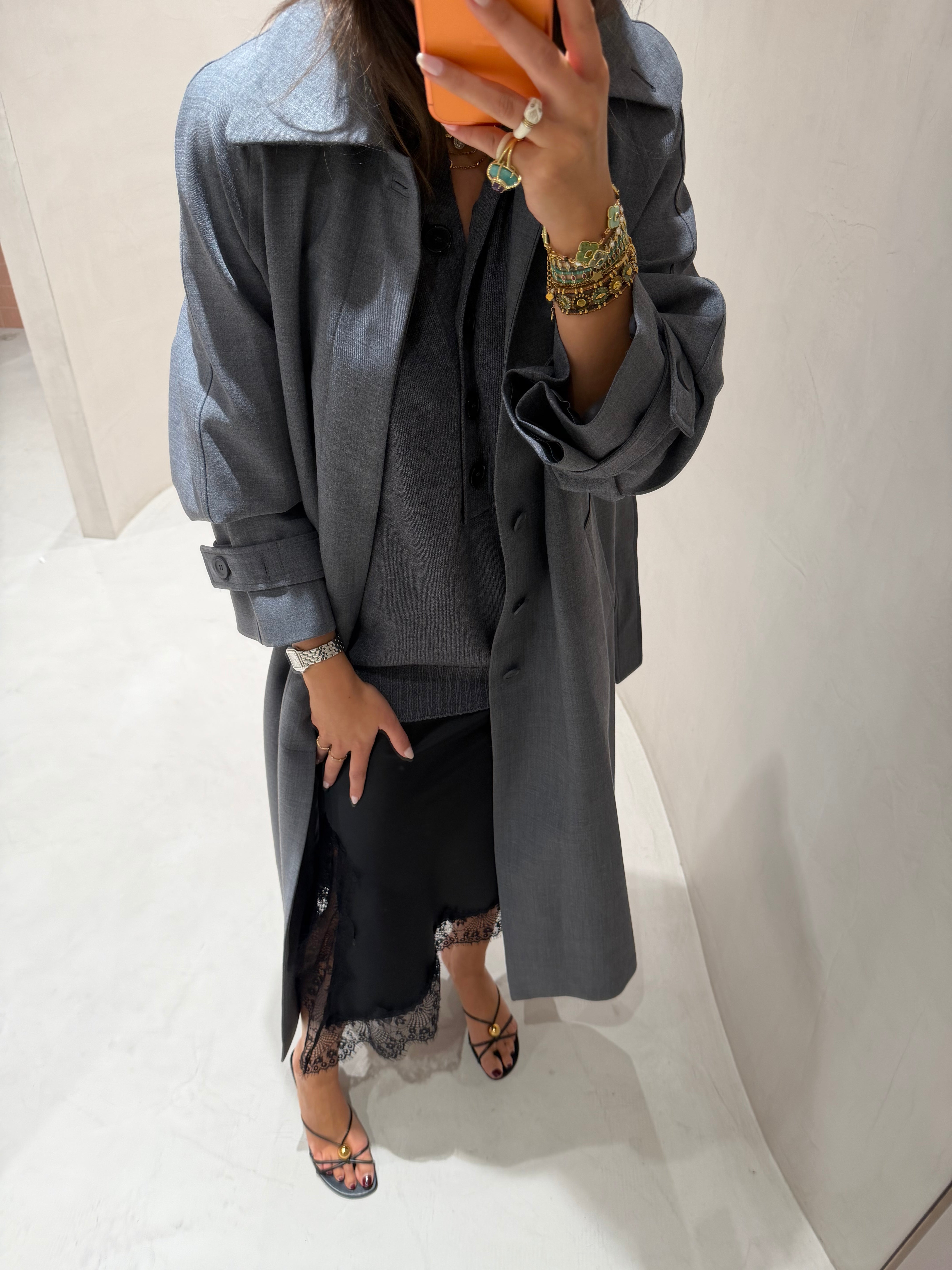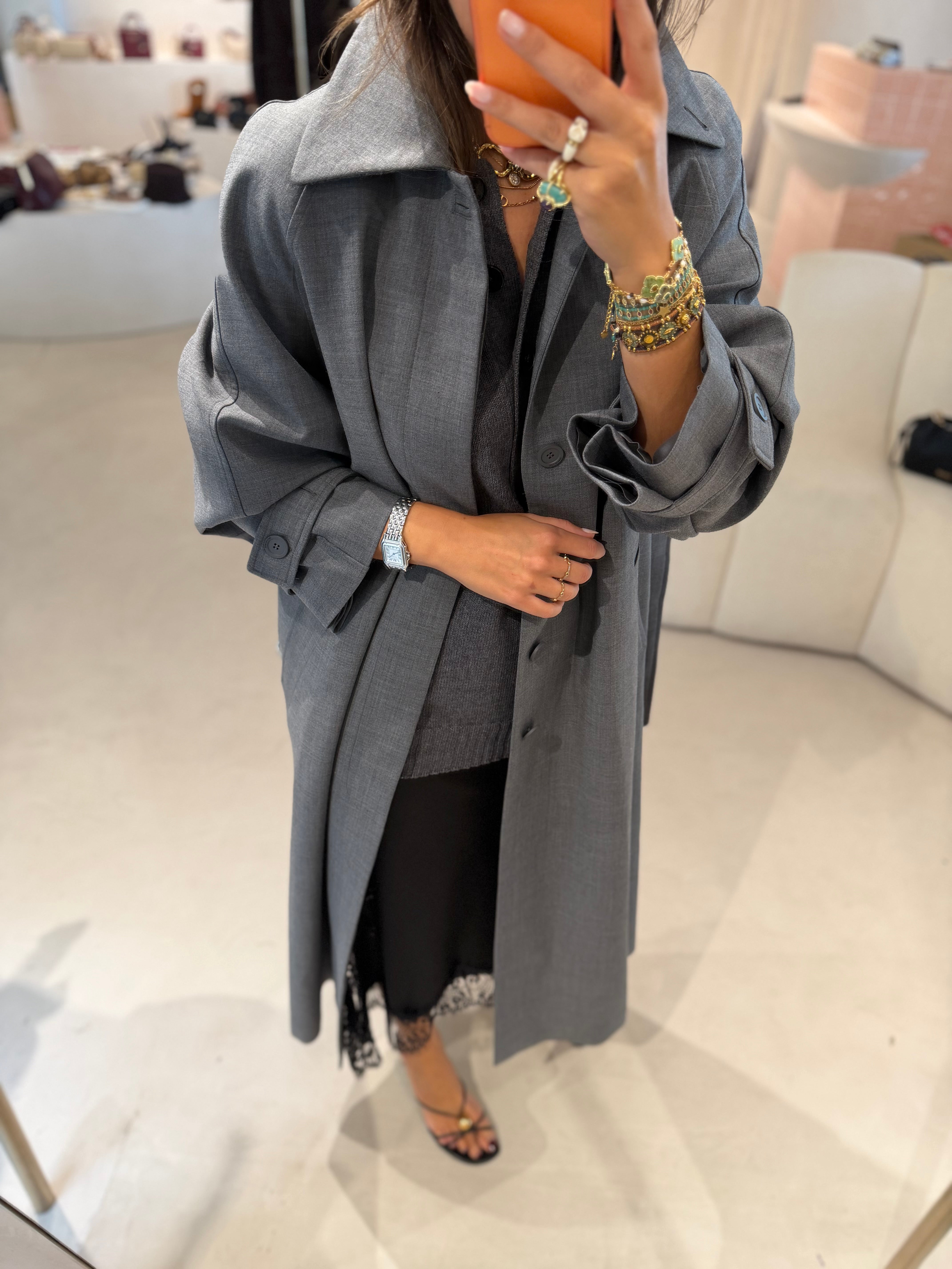 Trench Coat midi em Lã Cinza Beatrix | SEMICOUTURE