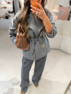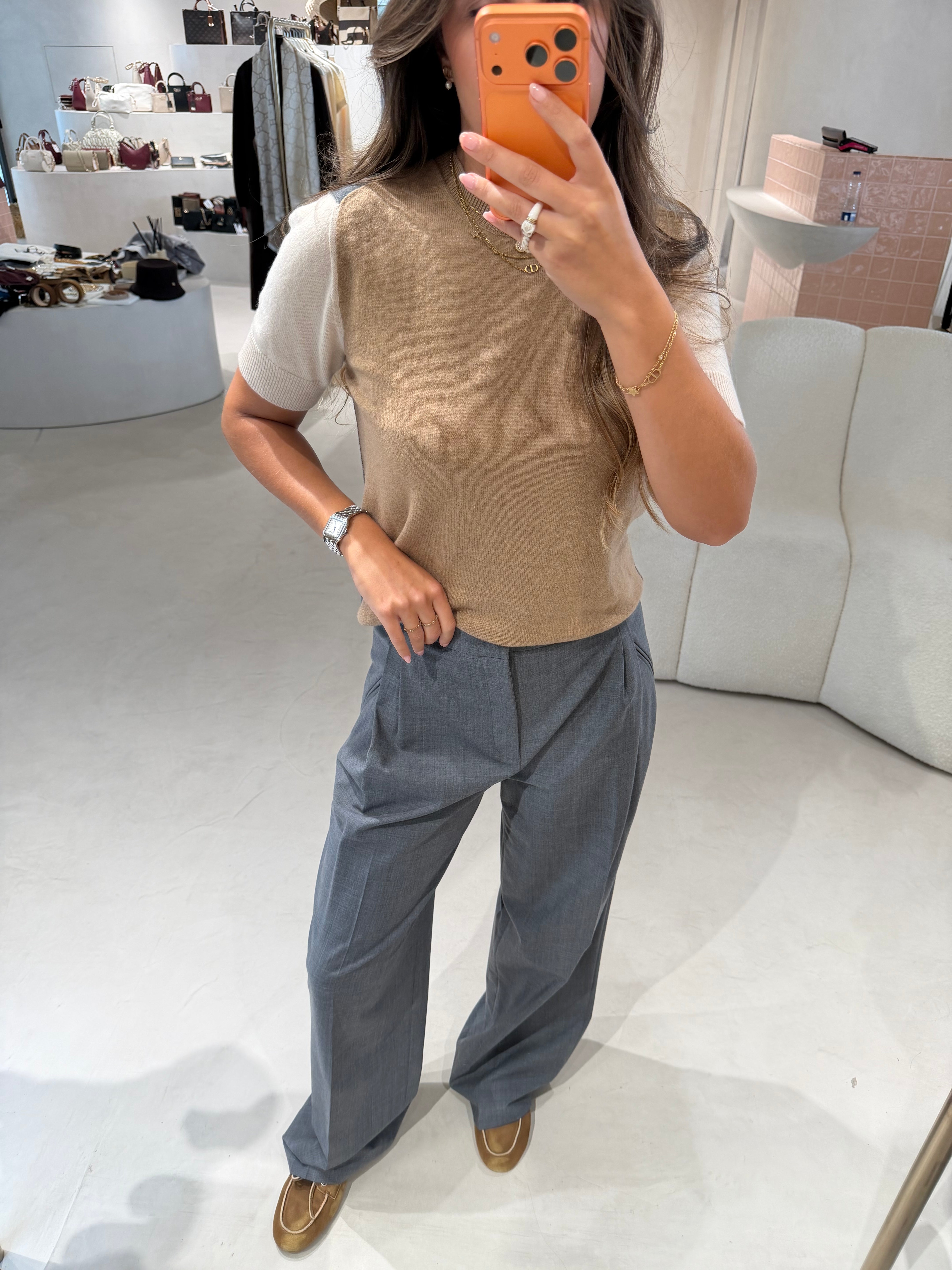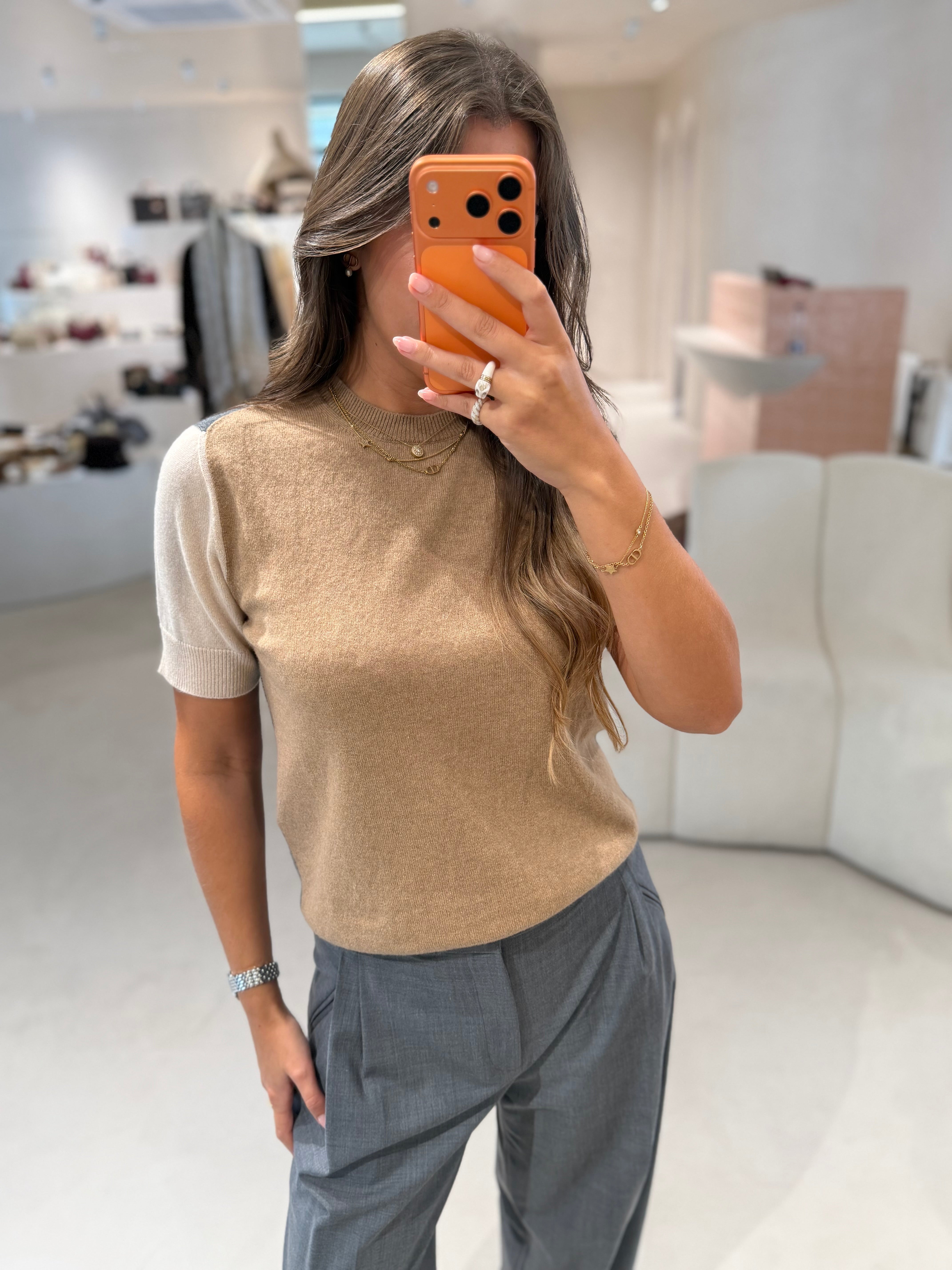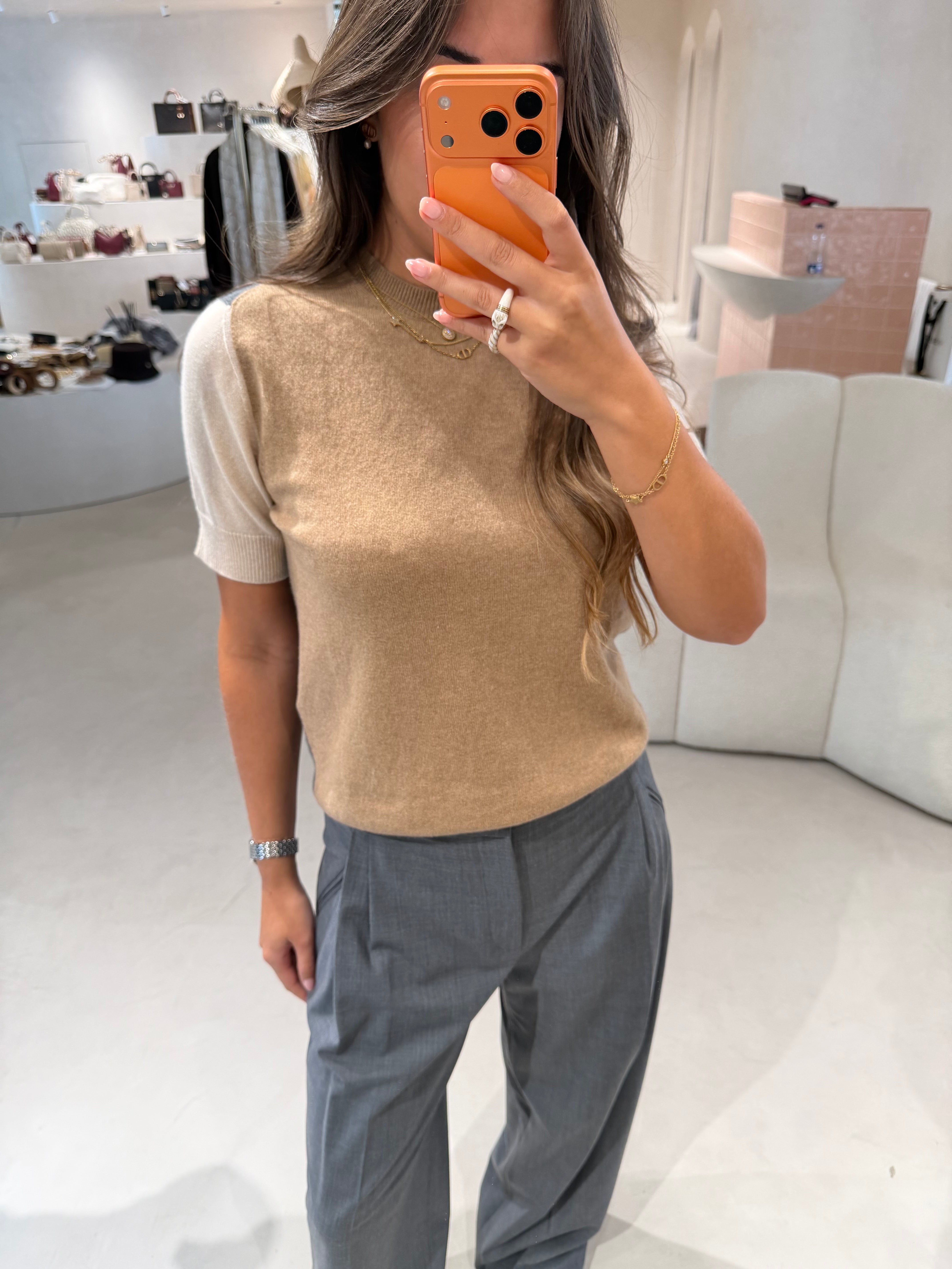 T-shirt em Lã Merino & Caxemira em Camel e Cinza | SEMICOUTURE