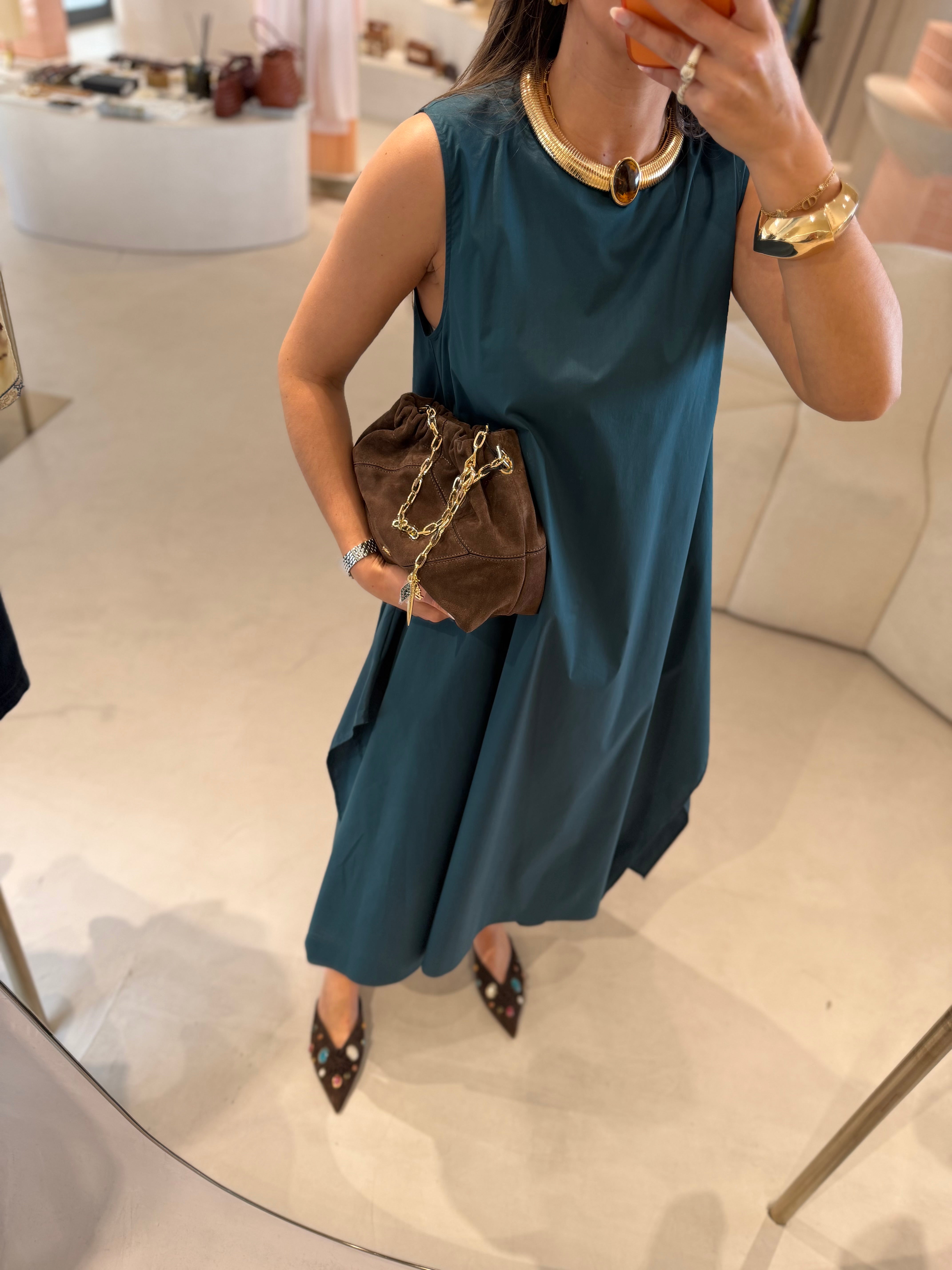 Vestido em Popelina Verde Manga Cava | Liviana Conti