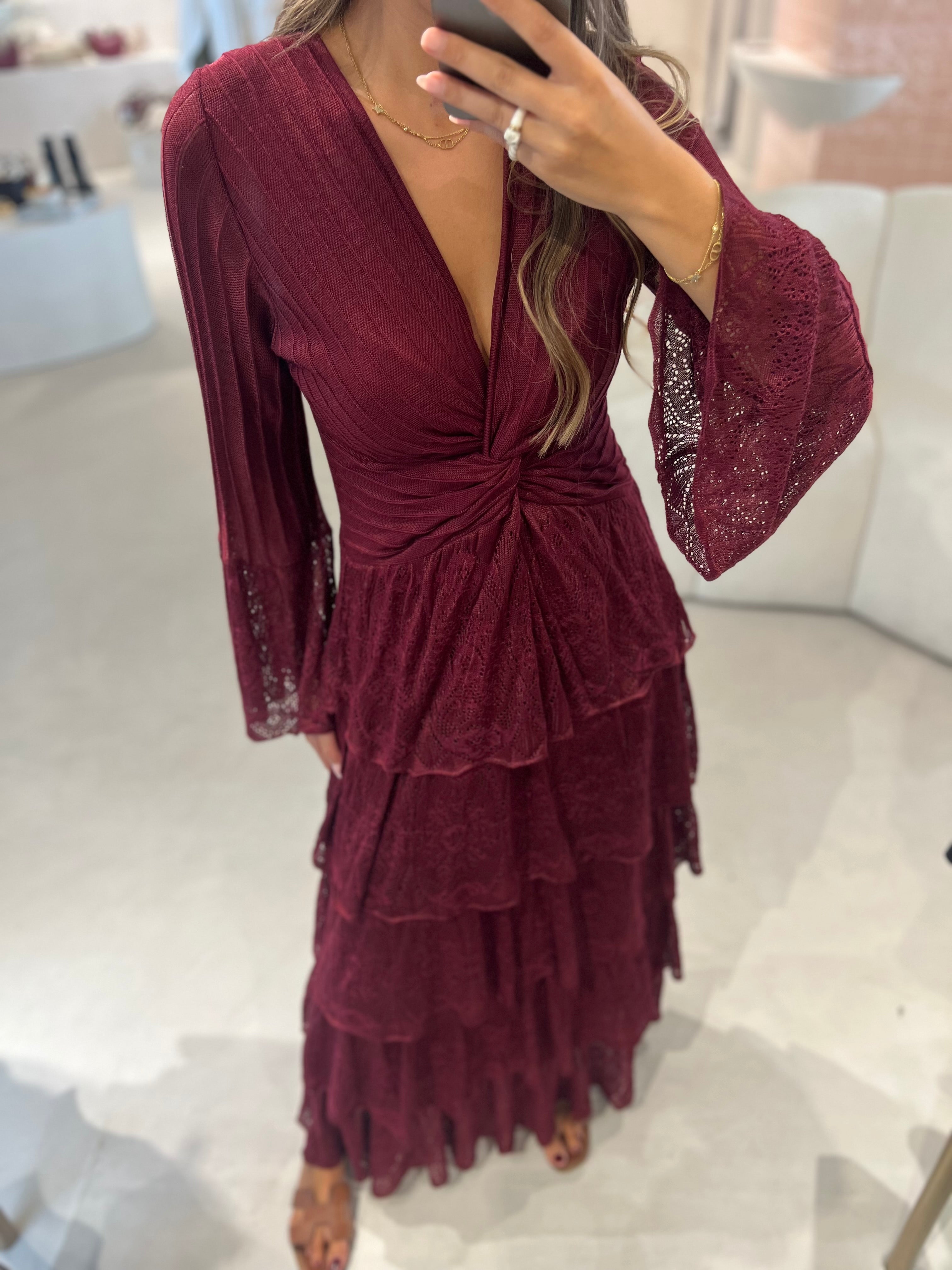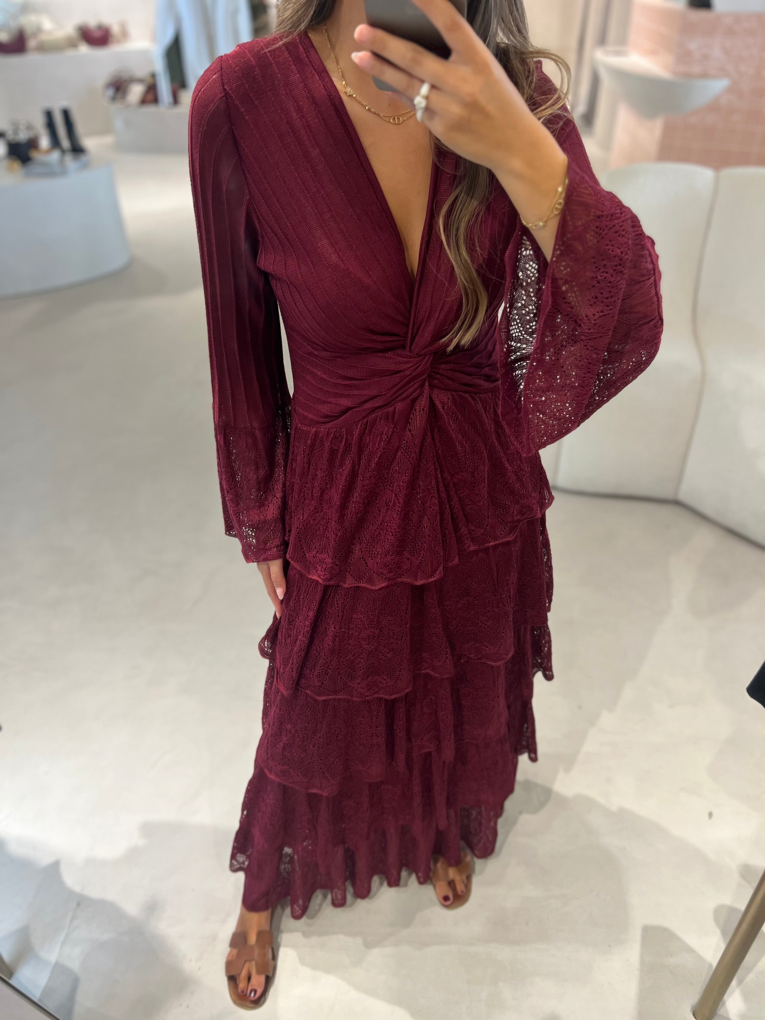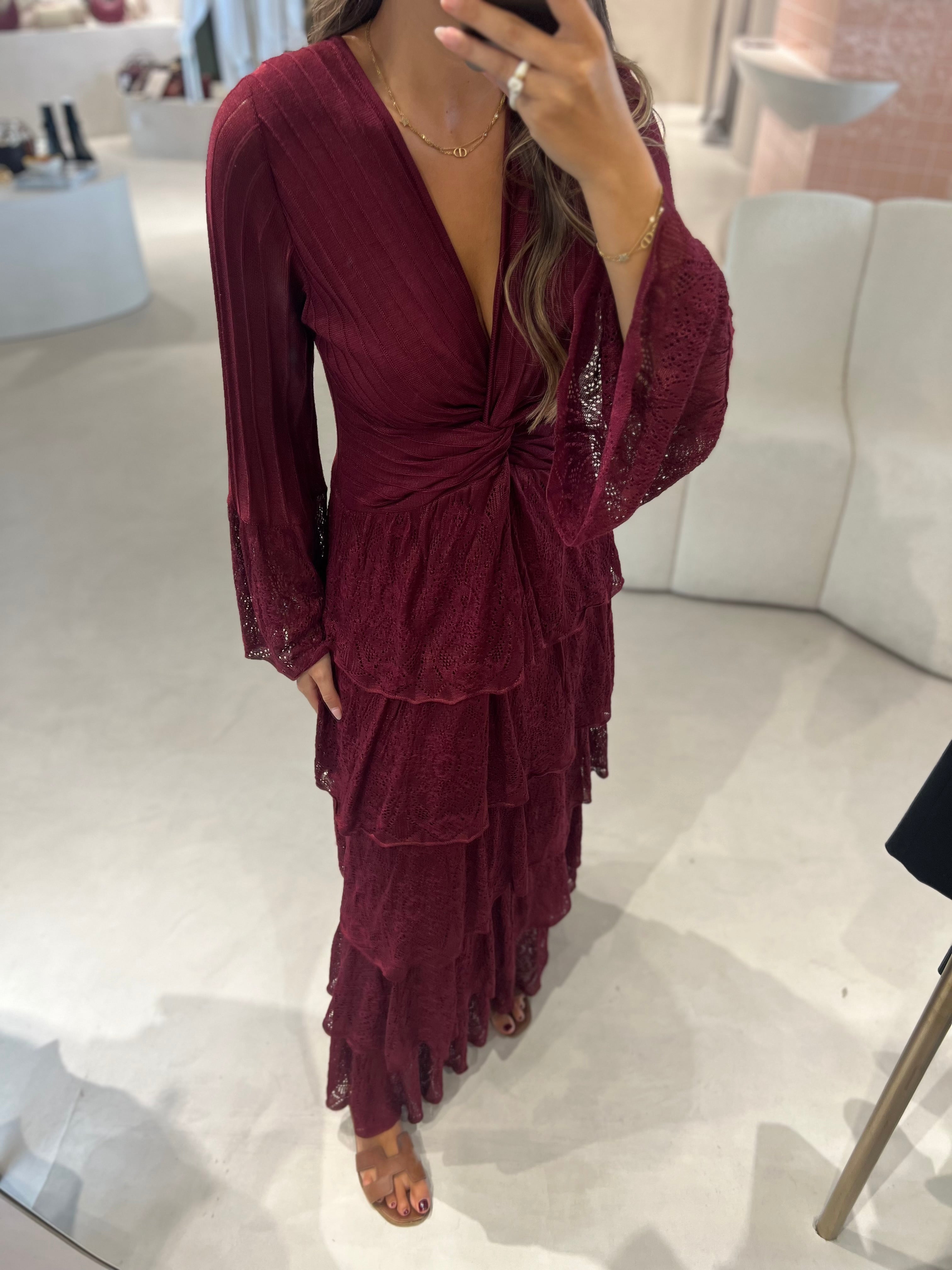 Vestido em Tricot Bordeaux com Folhos Marcela | CECILIA PRADO