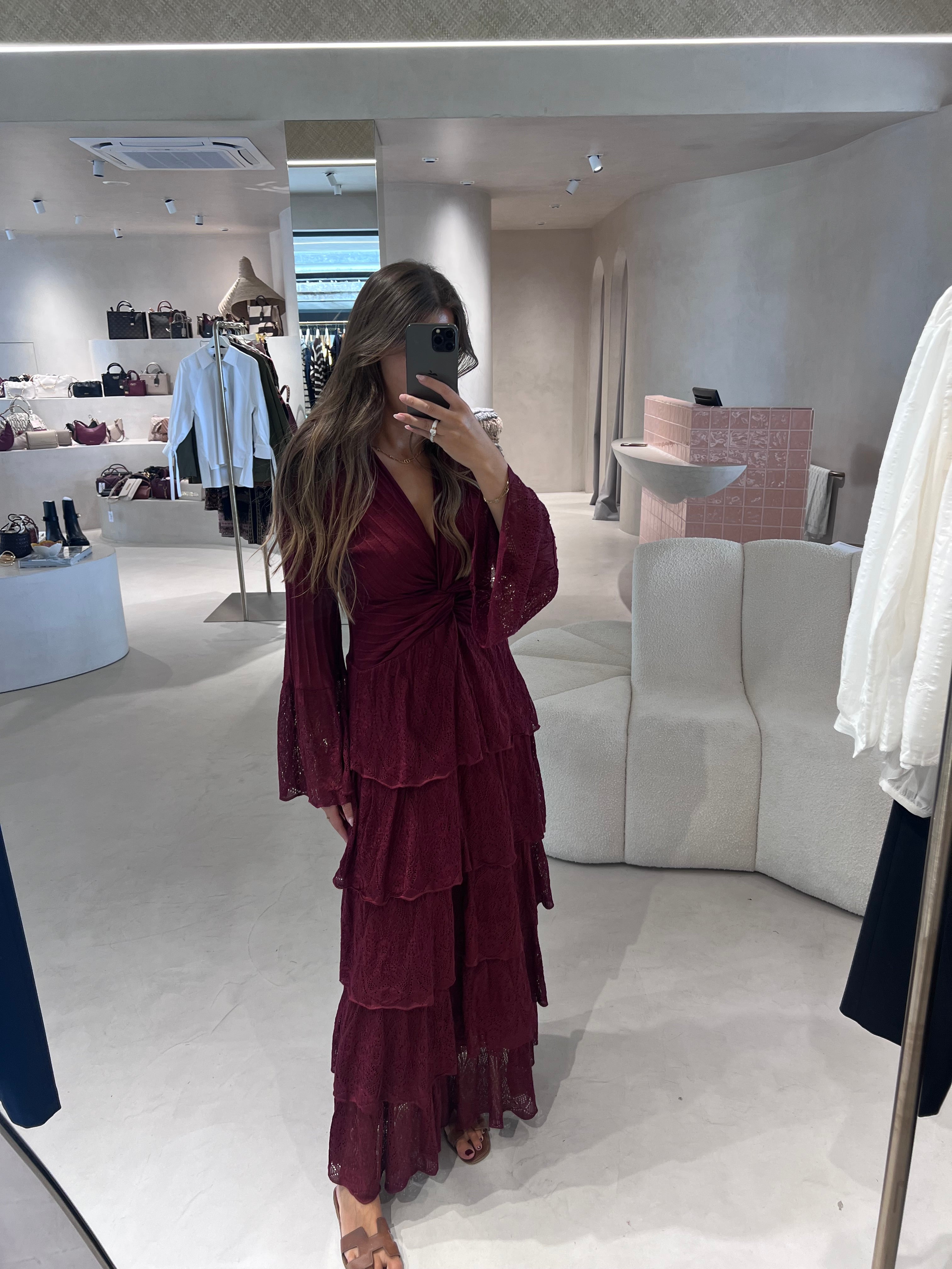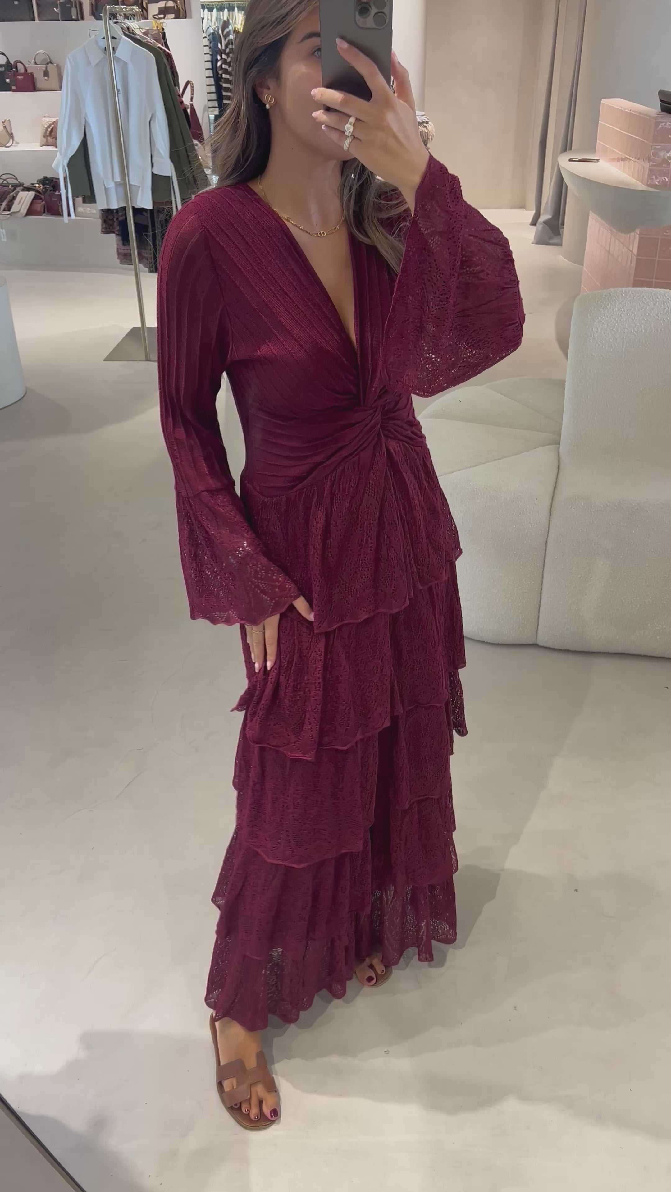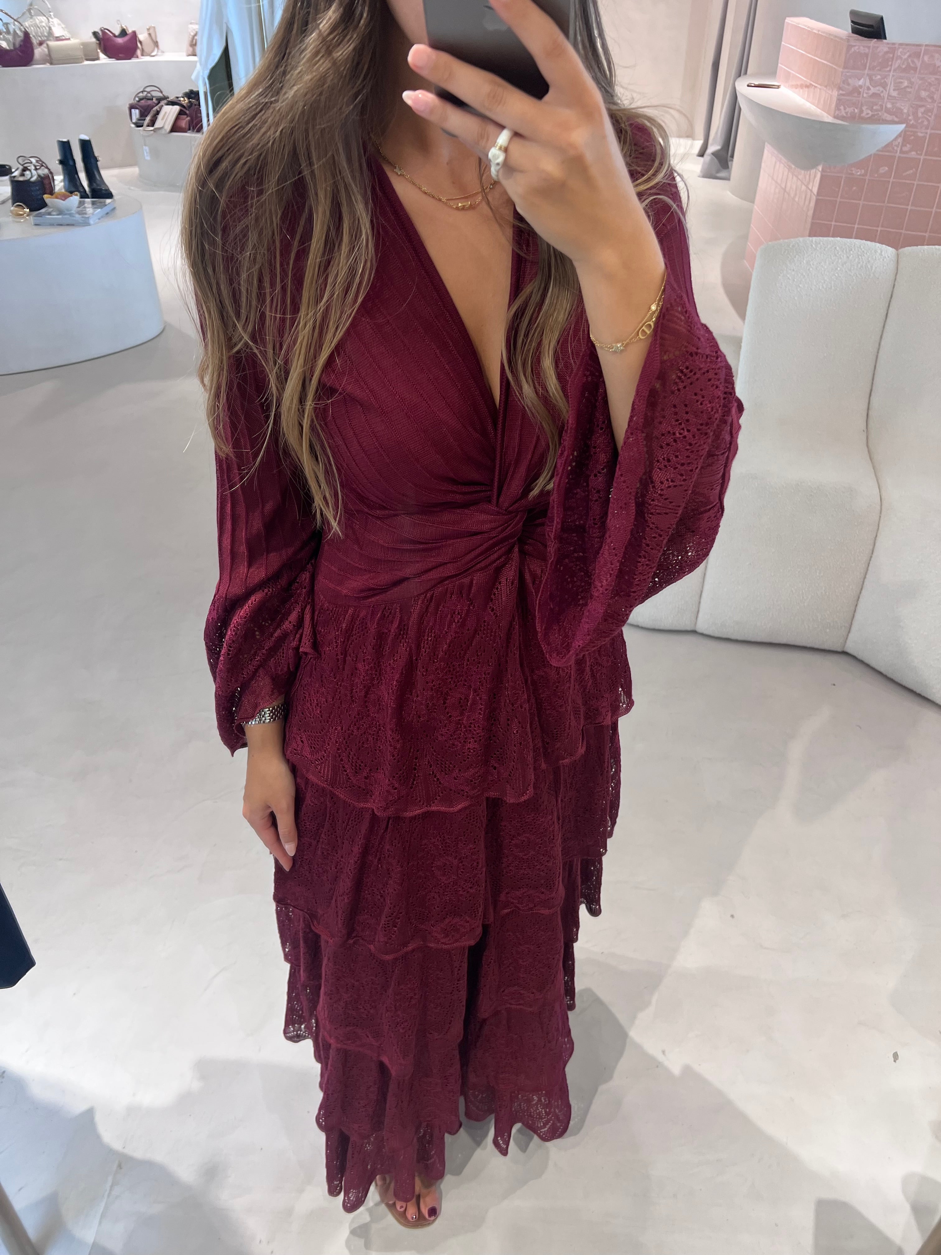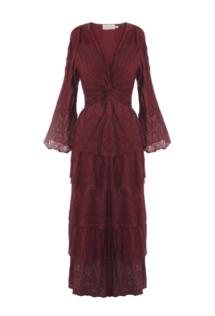 Vestido em Tricot Bordeaux com Folhos Marcela | CECILIA PRADO