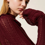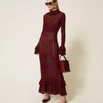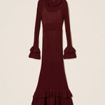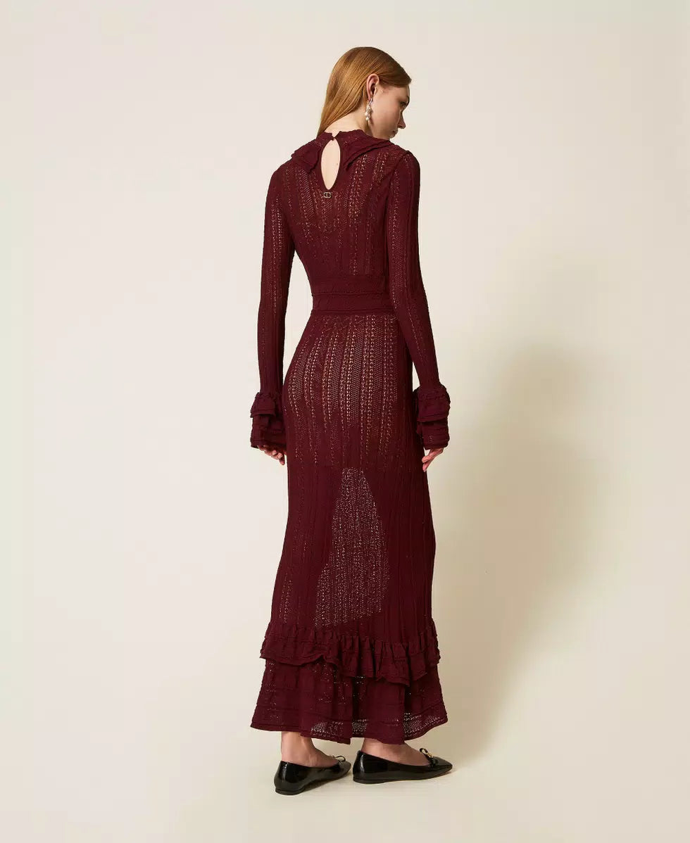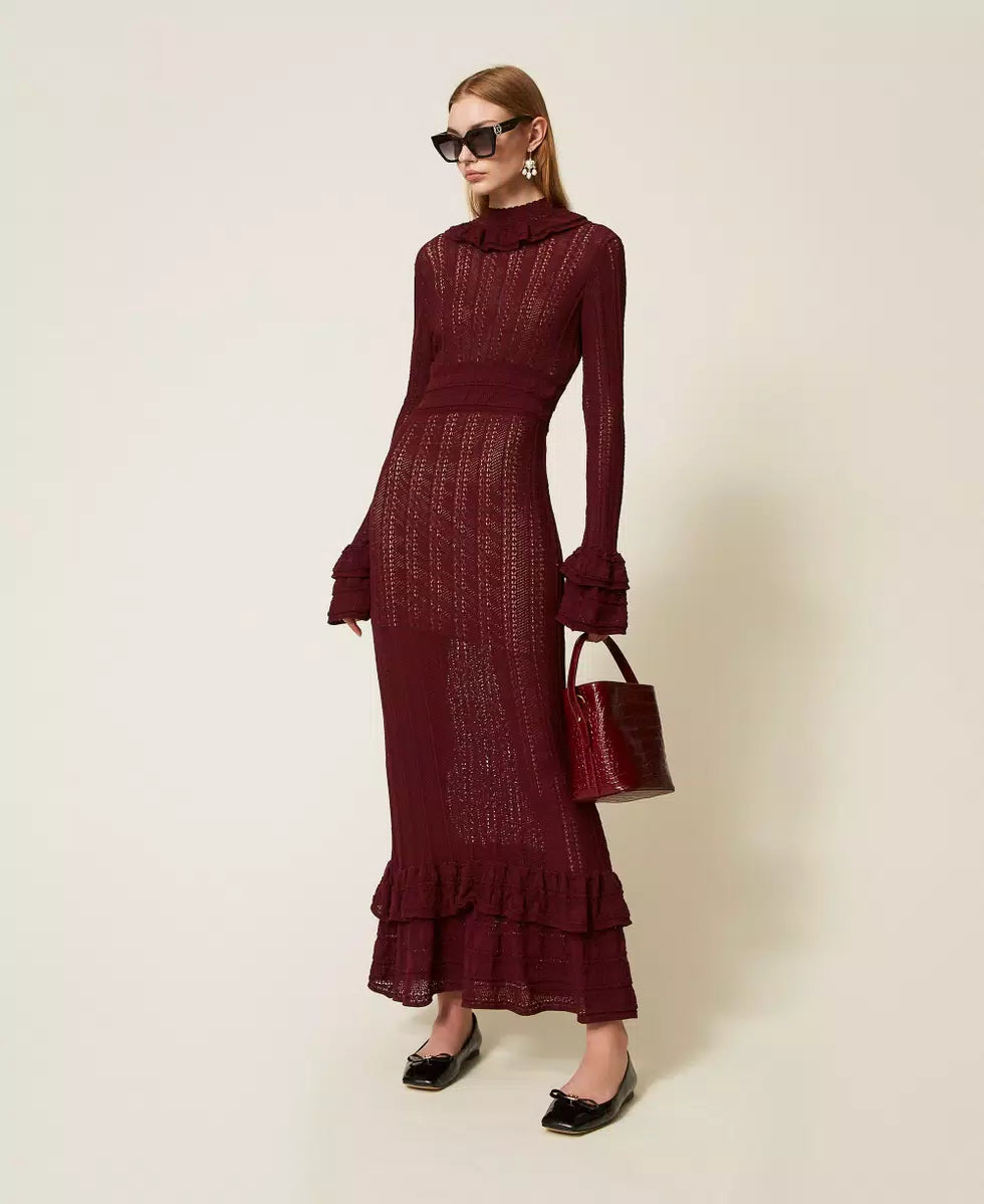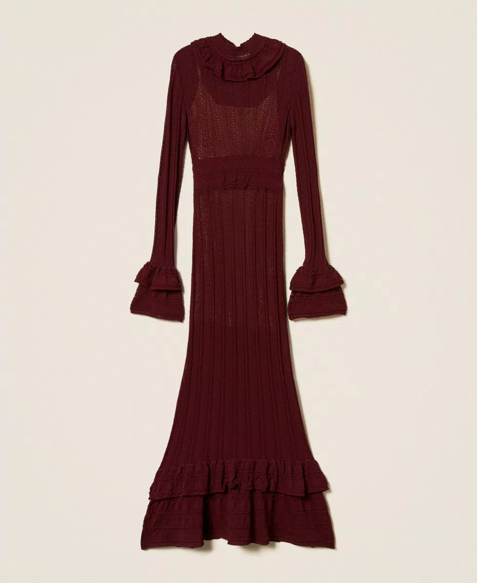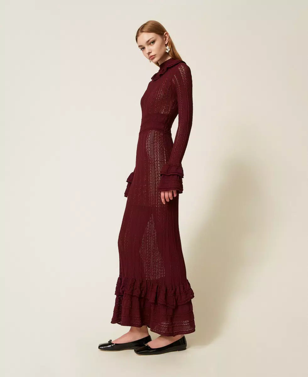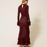 Vestido Comprido de Malha Bordeaux com Folhos | TWINSET