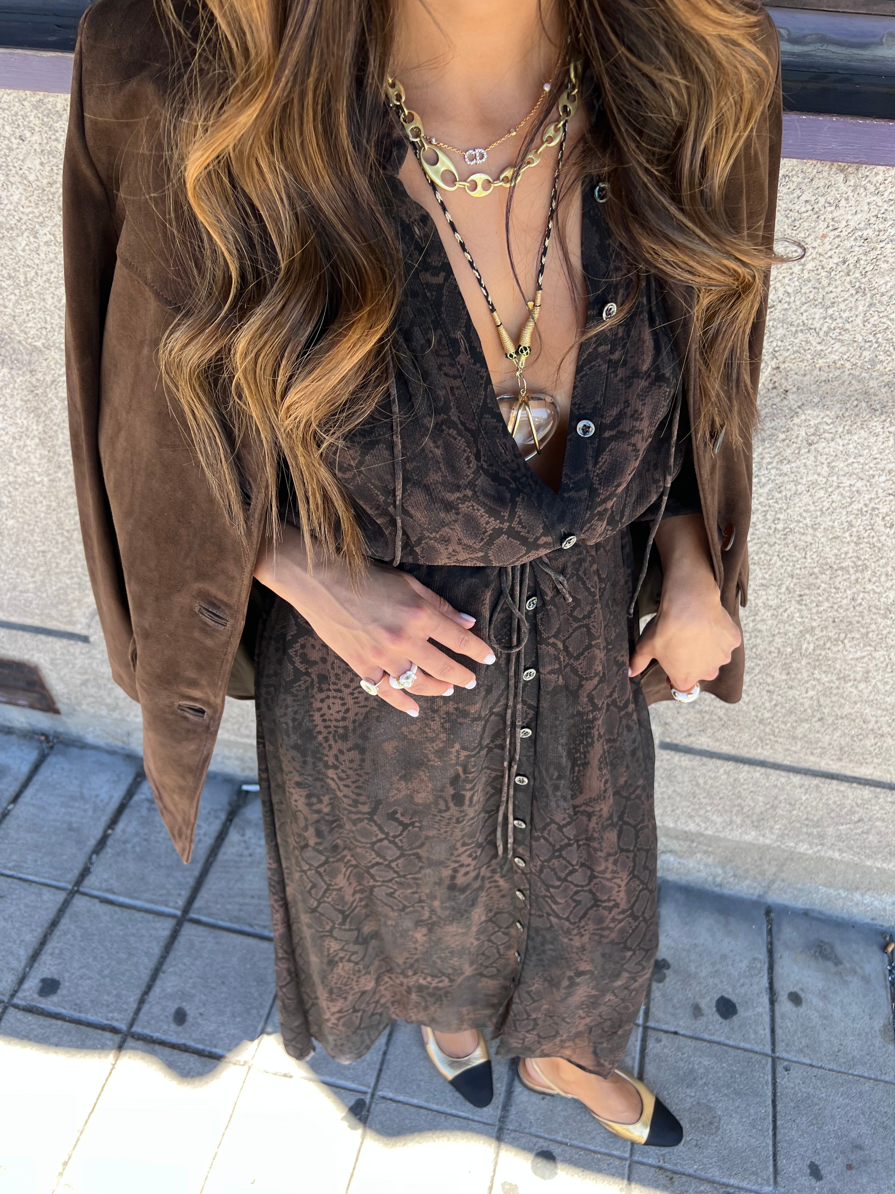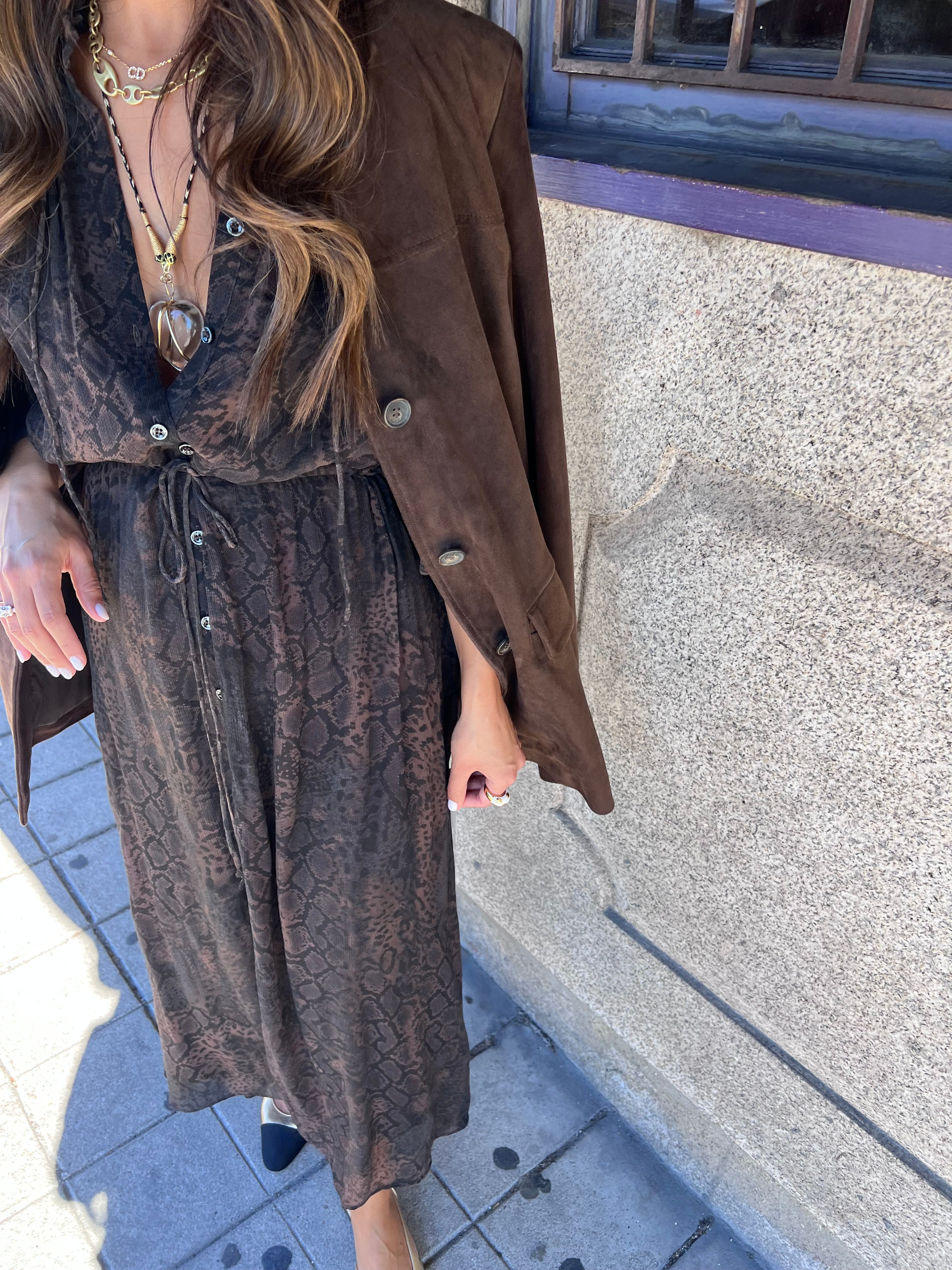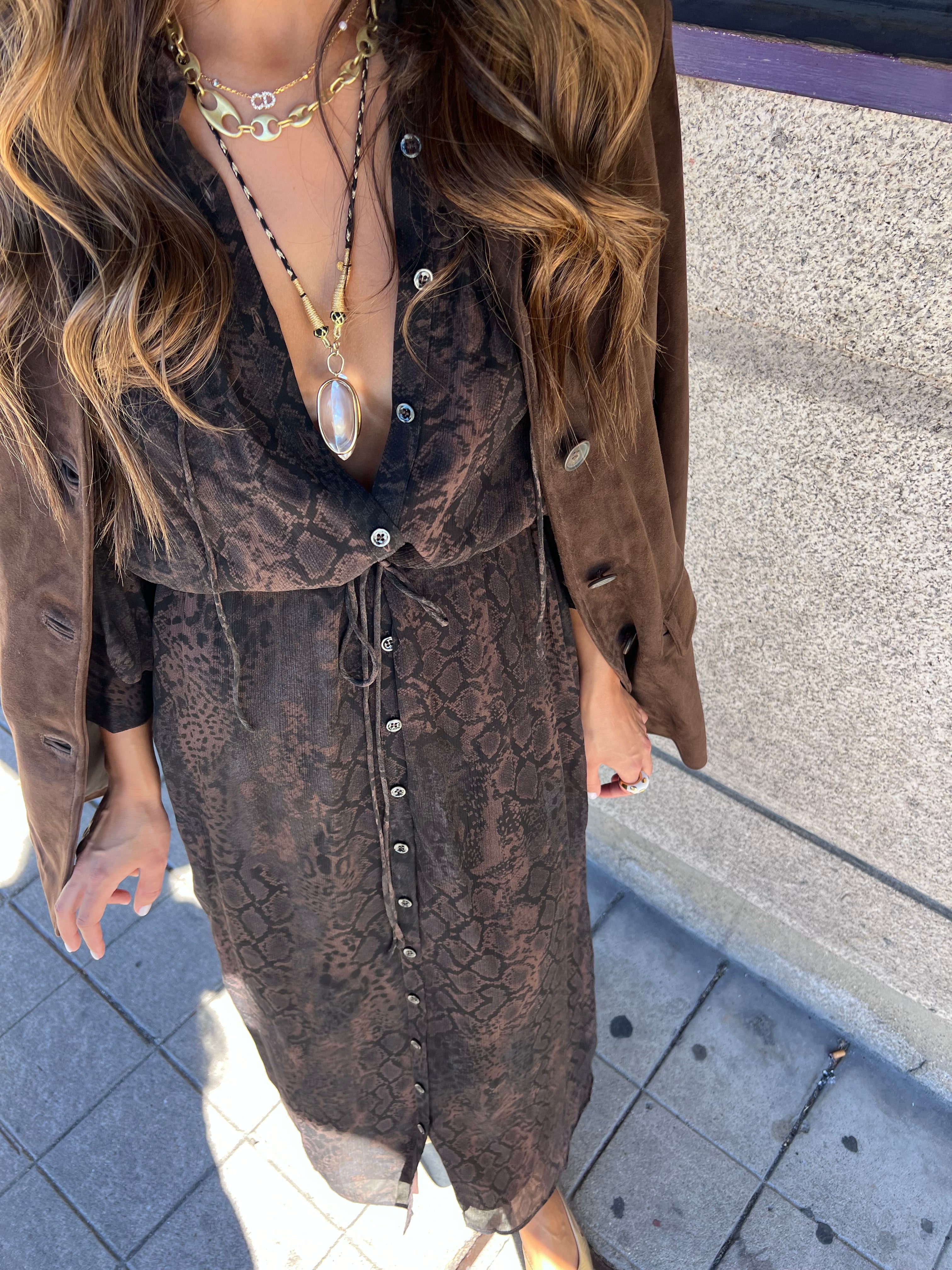 Vestido Midi Boho Chic com Print Pele de Cobra Castanho Saha | ba&sh