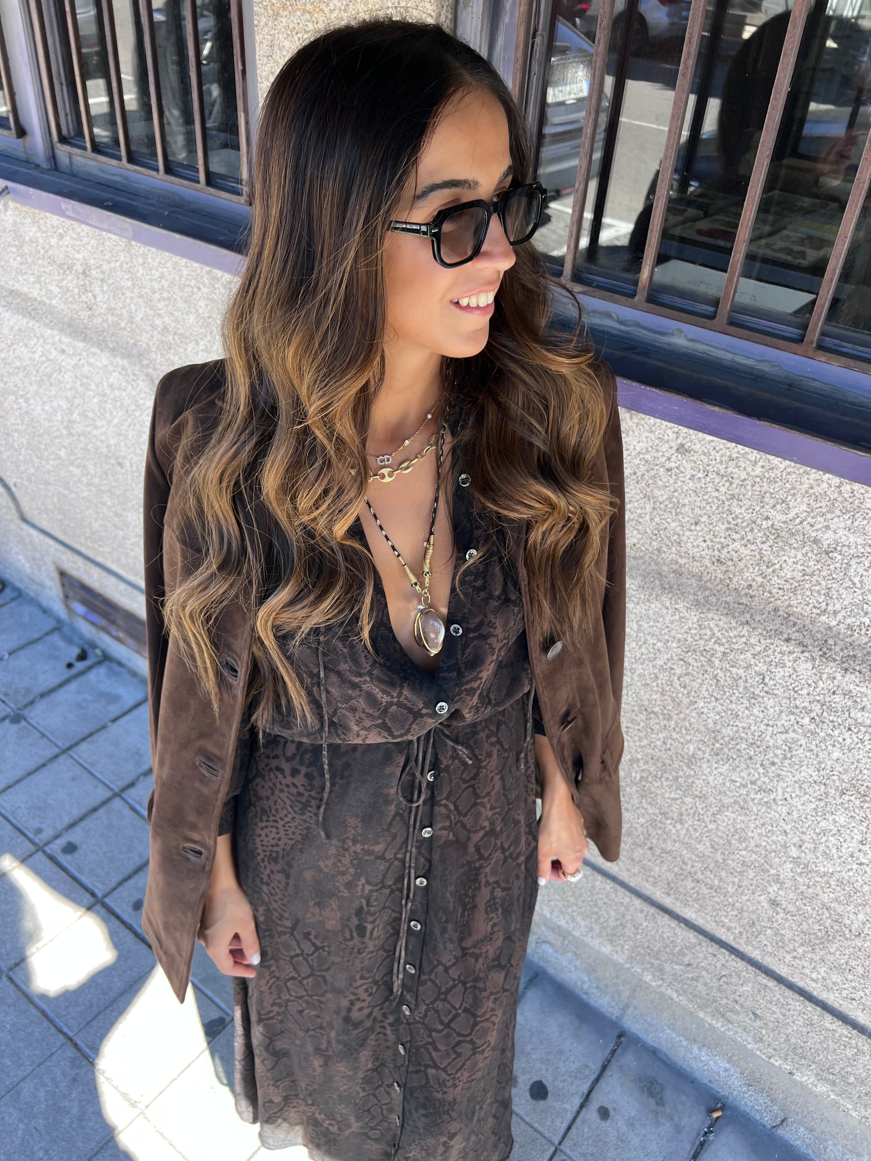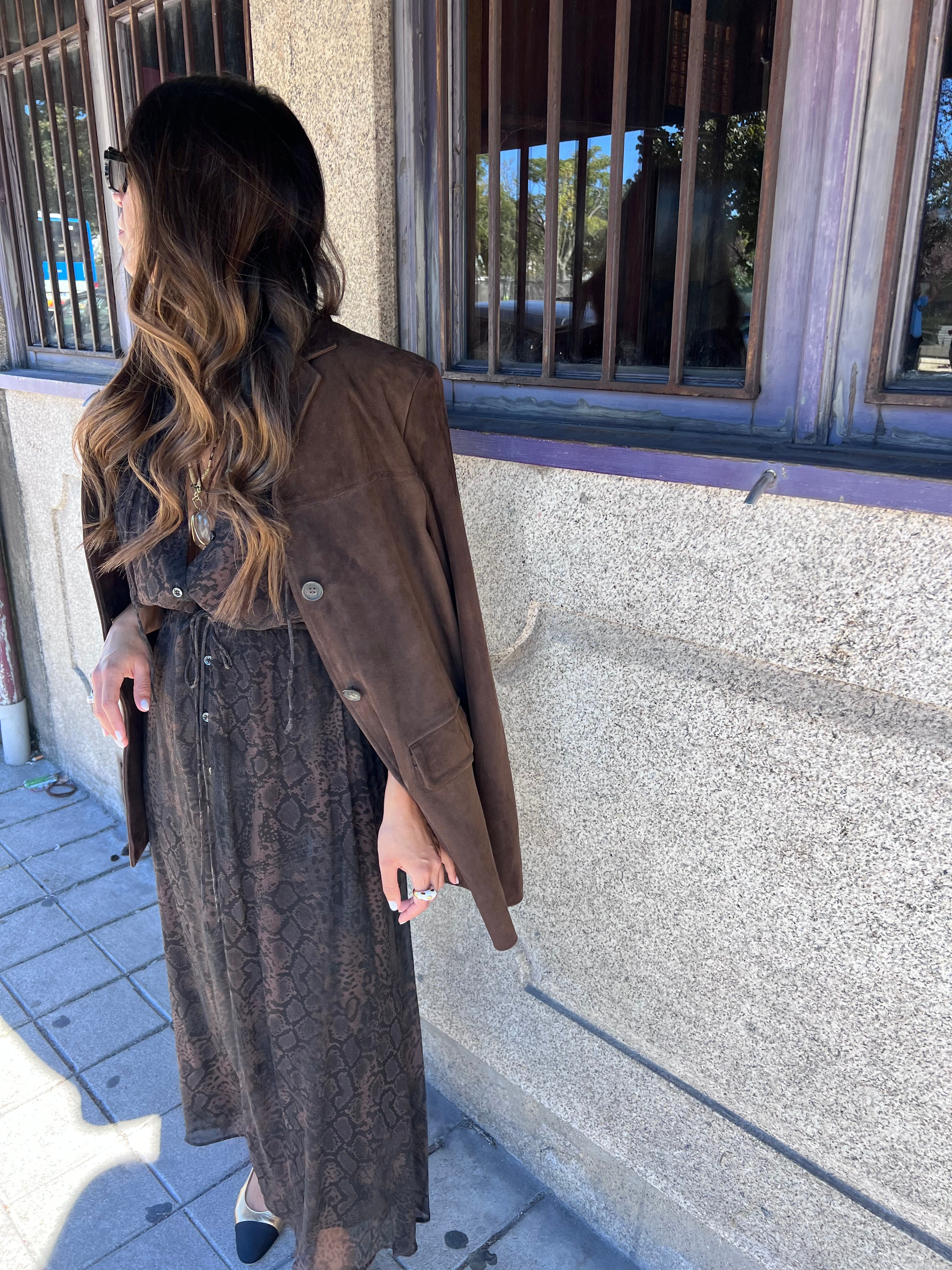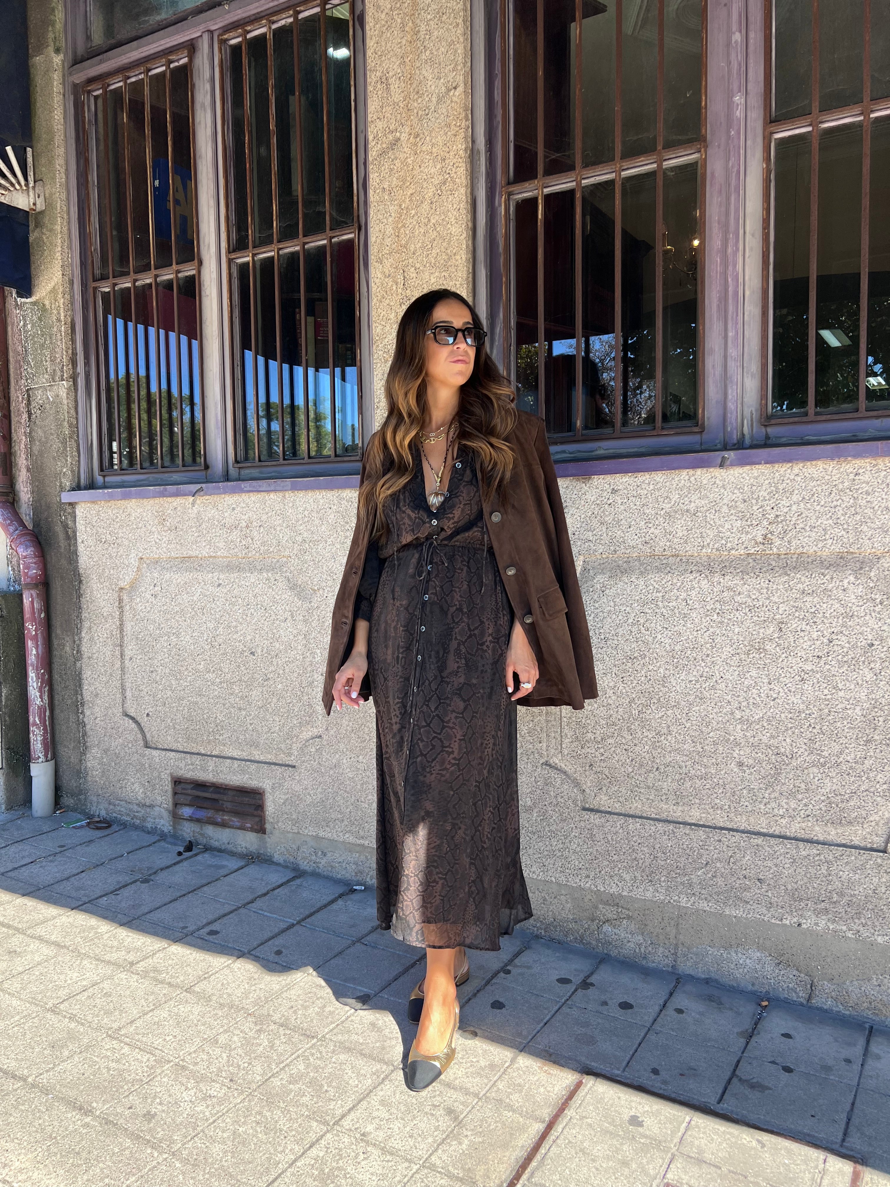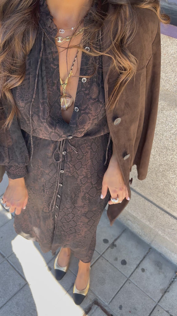 Vestido Midi Boho Chic com Print Pele de Cobra Castanho Saha | ba&sh