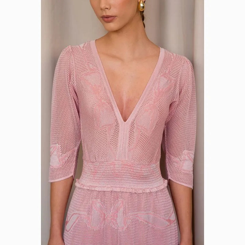Vestido midi Cecilia Prado em malha tricotada rosa
