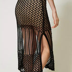 Vestido midi TWINSET preto em malha tricotada com pérolas